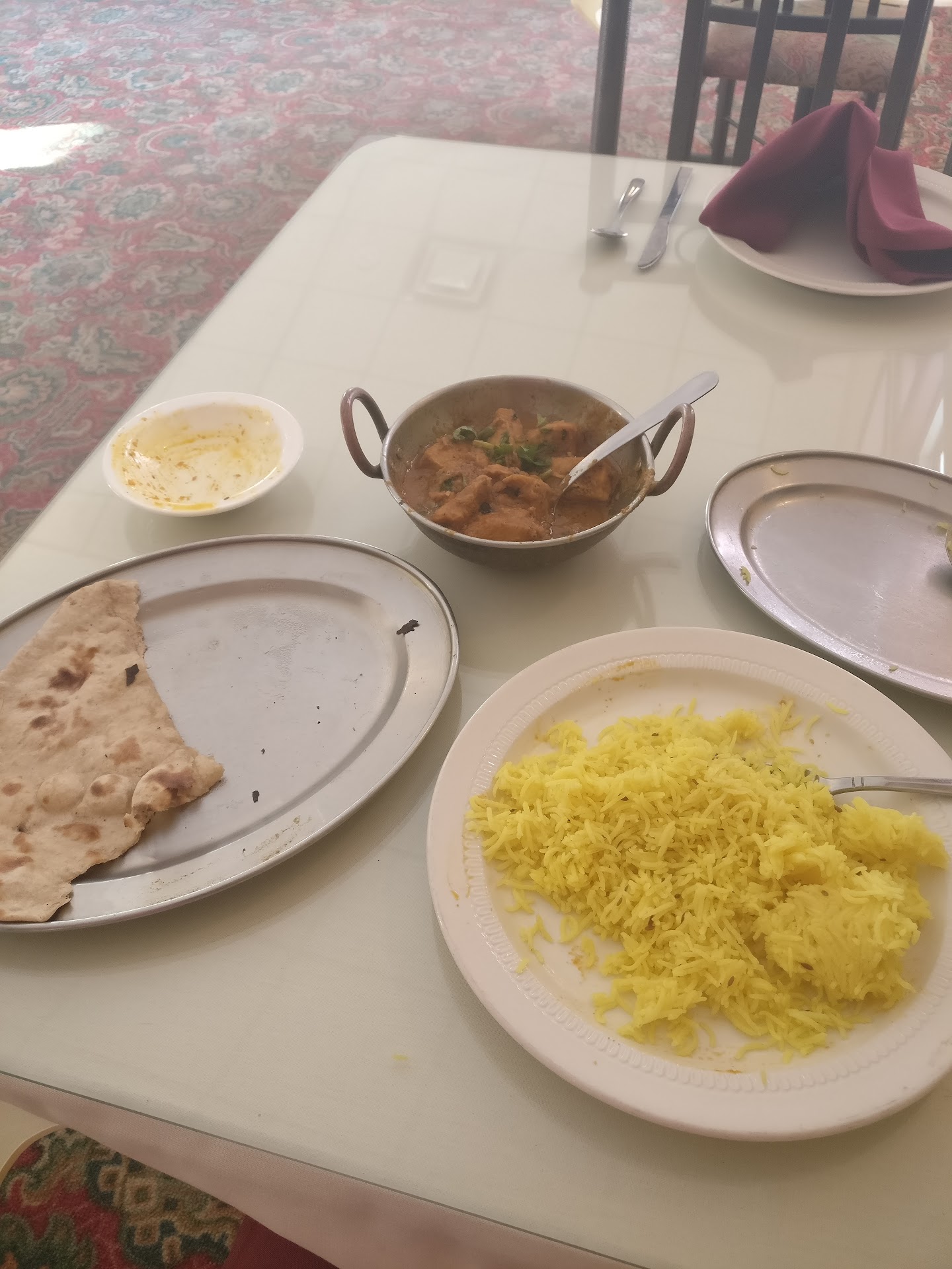 STAY AWAY- Not because what you are going to read below which because of my personal experience but surely because of mandatory service charge (not the gratuity) of 15%.. Now speaking from my experience went to this restaurant on the way to Niagara Falls - at restaurant around 9 PM Friday night (usual timing were open till 10.00 PM) we saw chefs were leaving by 9.30 upon taking our order and there was just one person in restaurant who was serving. Anyways about food was not tasty at all - we ordered veg vindaloo which was more like a mix veg and was bland & tasteless. dal tadaka was without tadaka and watery. Naans were too big for the portions but not worth for the money. Interesting part is they charged for the pickle 2.98$ for small quantity- really on top of that they call it imported pickle? how they justify that small amount which they don't cook to sell at that price. Another interesting part is this restaurant will charge you for service charge ( no matter for what size of table / no of people you are on). We were 3 adults and two small kids and they charged us 15% (not the gratuity) but the service charge- and that really upset me. we paid almost $10 for service charge..for really no special service....we were kind of left alone in there for most part of the dining..