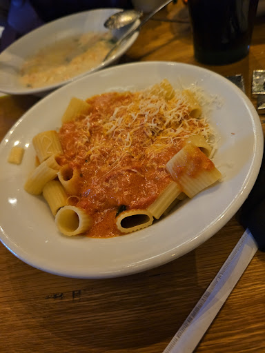 Read moreI don't know if it's just me, but the Olive Garden chain as a whole has gone down in the past few years. I went here this past Saturday at 4pm (right before the dinner rush), and right off the bat the service was not very good. We had only waited 20 mins for the table which isn't a problem, but after we were seated and our drink/food order was taken, it took them twenty more minutes to come back and give us our soup and salad and breadsticks which is an awfully long time to wait for pre-frozen breadsticks and a bowl of salad. Our waiter then asked us if we would like any dipping sauces for the breadsticks (without informing us of any extra charge), which my girlfriend and I were sucked into and received a tiny portion of marinara sauce that costed almost $4 and waited another 15 minutes for. When our meals had finally come out, we were both initially surprised about how good they looked, but I shouldn't speak too soon: I ordered the braised beef and tortelloni which is an all-time favorite of mine, but the balance of richness and mushrooms overpowered the entire thing. I couldn't eat more than a third of it, and I have never not finished a meal before. My girlfriend ordered the tour of italy, consisting of a small portion of lasagna, alfredo linguine, and chicken parmesan. The first mistake they did was with the lasagna: the restaurant uses crimped lasagna noodles which made the entire piece of lasagna dry, and was overwhelmed with more meat than sauce. The alfredo wasn't bad and neither was the chicken parm, but the chicken had no seasoning other than the bland sauce and cheese on top. Only come here if you have a gift card that someone gives you, otherwise scratch this one off your list. This goes for each restaurant...