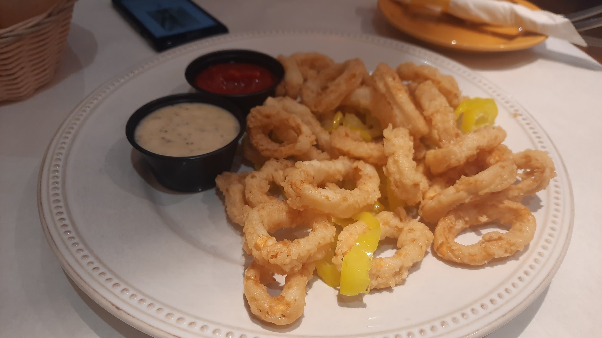The appetizers came out pretty quickly after ordering and were ok, calamari was really chewy- not how it usually is there.