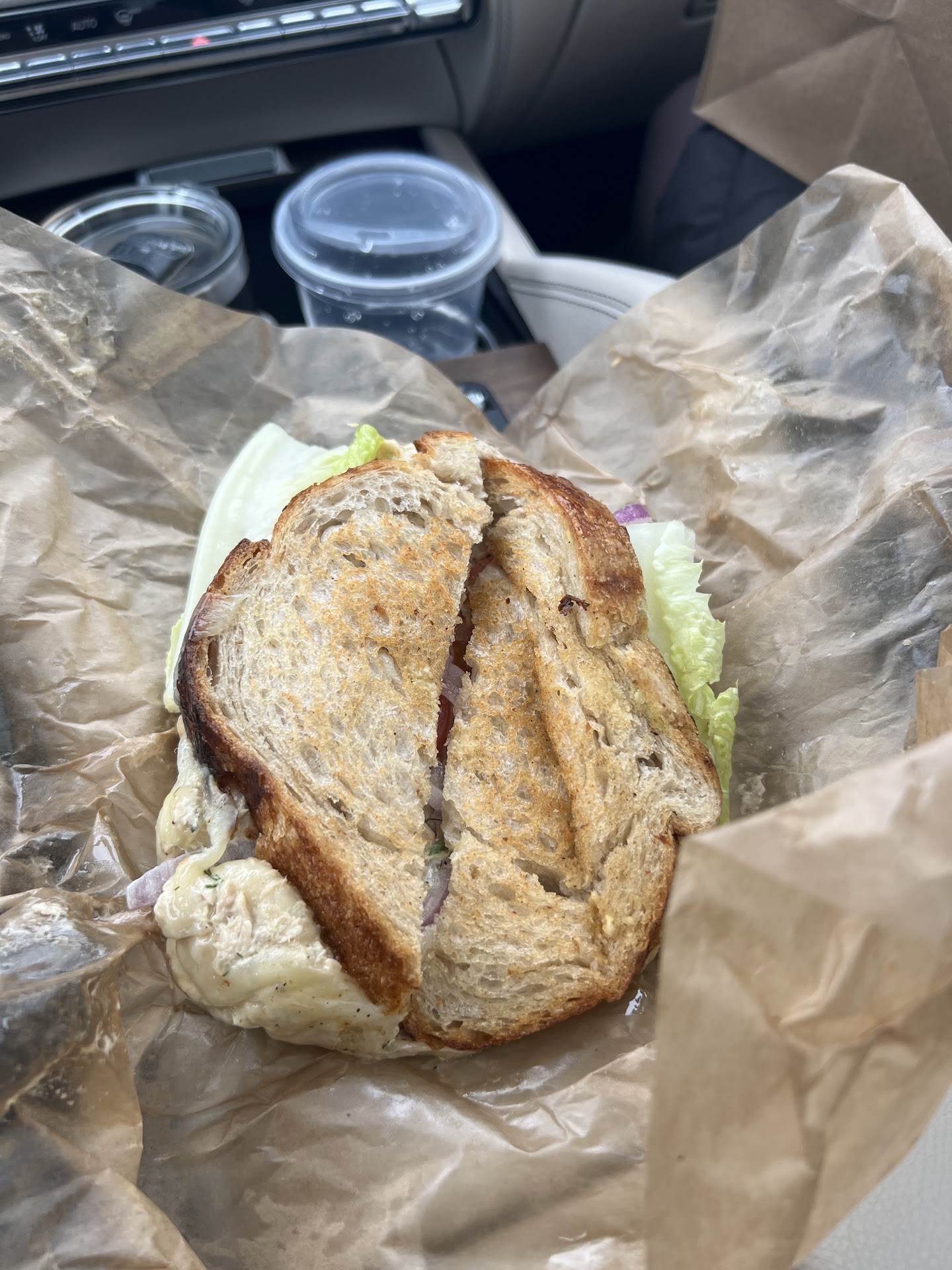 My order was for no gruyere sauce, but again, please see the pics of the sandwich. How can I eat this mess in my car?