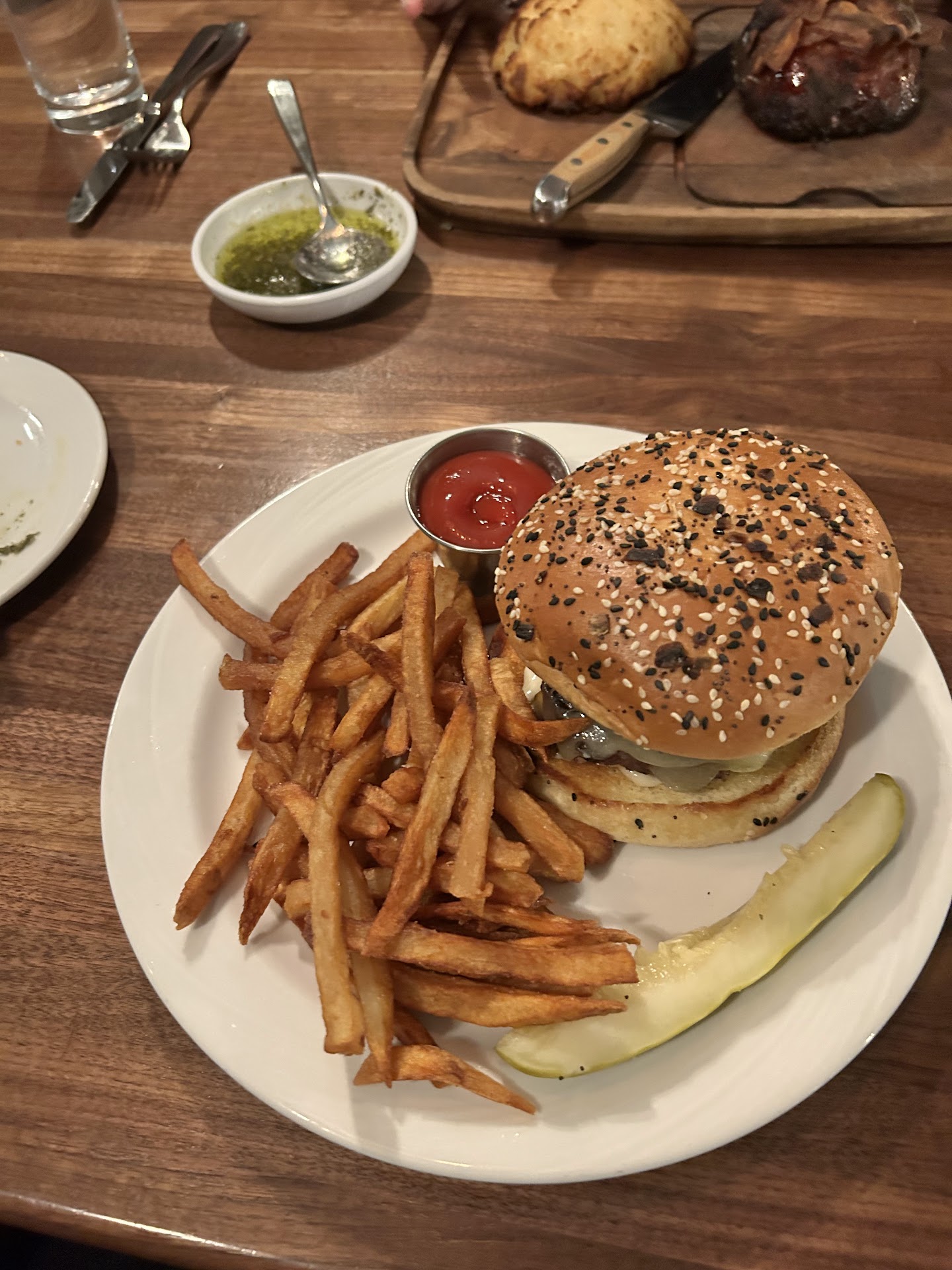 This was one of the only two restaurants that was open at the resort so we decided to give it a try. We had dinner reservations at 7:45 PM. Apparently, it was the earliest time we could get on a Friday night. We decided to walk down at 7:30 to see if we could get seated and to our surprise we got seated right away. However, no one came to give us water or introduce themselves for 45 minutes while we were sitting there and there were still plenty of open tables so it wasn’t like the restaurant was fully booked. Service was terrible - probably due to staffing issues and the reason why they gave us such a late reservation but I didn’t expect to wait that long. Our kids were asking if the food was almost ready and we hadn’t even ordered. By the time the waitress came around, we ordered drinks and food all at once. I made sure to ask for the kids food to come out first and good thing I did because our food took a while to come out too.