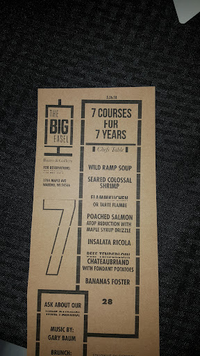 My only regret is I can only give 5 stars! Definitely a 9 out of 5. I was fortunate enough to be taken to this amazing restaurant by good friends for The Easel's 7th anniversary. When we finally left for the night I had made several more! I will say it is difficult to decide whether the magical food, the incredible collection of art or the marvelous people who impart this experience was the highlight of my evening though and only hope I have the opportunity to return! Thank you so much Connie and Tim for allowing me to join you for your...