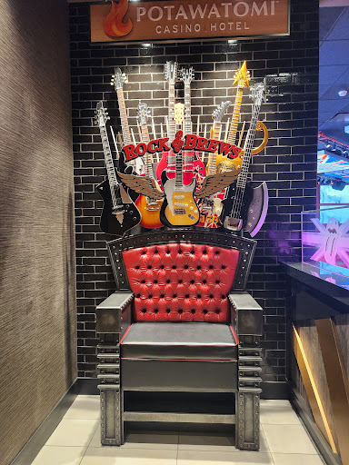 This place is located in Carter Potawtaomi Casino--Carter, Wisconsin. The atmosphere/decor is fun. While waiting for my take out food, I enjoyed flashbacks of music videos shown on large screens displayed around the walls. There is a nice size bar along with ample table seating. I ordered the Philadelphia Freedom Sandwich which is a house marinated chicken sauteed with onions, red and green bell peppers, mushrooms, and cheese. The vegetables could have been cooked a little more so they were softer but the sandwich was still tasty and the portion was large. It came with fries. The fries were hot and crispy. The music wasn't blaring loud which was a plus. I caught myself singing along to Springsteen's song! I was busy in the casino so I can't say how busy they were on this Sunday, Father's Day. I placed my order about forty minutes before they closed. I'm sure when I come back to the casino I'll be trying more...