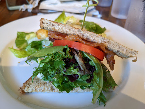 I started with Shrimp and Quinoa Gumbo soup in a cup. Amazing. ($6). For my main meal I had the Steak and White Cheddar Panini Marinated Flat Iron with sautéed red onions, tomato, spinach and horseradish aioli on ciabatta bread ($14) served with a choice of quinoa tabouli, garden chickpea salad, summer lentil salad, or french fries. I chose the chickpea salad which has no flavor so you have to add olive oil and vinegar cuz there's no seasonings The sandwich is very big. Meat was pretty tender. Cheese could have been melted a little more. It was enough for two meals. Sandwich did not blow me away for $14. But when you're starving....I feel it's overpriced for lunch. $21 without tip. Really nice atmosphere. My friend is here frequently and she got the avocado egg rolls they give you two for $10 with some spicy stuff that I wasn't crazy about. She also built her own salad in that cost $19. You can build your own salad starting with the greens and then adding in the meat, condiments etc. A plain salad is $9 and then add another $10 for all the other things that you like. Apparently she really likes it I thought it was overpriced but she enjoyed it and that's all that matters. The fish tacos look really good. The entire parking lot was packed at 1:00 in the afternoon had to wait for a parking spot. So they're doing very well. Good for them. Waitress was lovely. I felt the food came in a timely manner. I had a very nice visit with my friend in the restaurant. I didn't really notice any of the craft beers, all the different types of espressos and teas or the fact that they had a second floor. We had a window seat so I was enjoying the scenery. I didn't take any pictures...