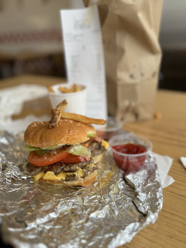 Read moreThis place is more of sit down and enjoy burger place. They are more like Subway, except for juicy hamburgers. A burger made with the toppings you like. The order taker was friendly, and since I was new to Five Guys, he guided me through the menu. I wish the other fast food places had people as understanding as this guy was. The fries came in bag with a cup, and the fries overflowed the cup, and bag was full of peanut oil cooked fries. The shakes are full of favor. I had the banana and strawberry. I also tasted the orioes and cream. I would recommend either. They have the latest endless drink dispenser. Free salted peanuts. Plenty of seating. A dipenser so you can easily take as many napkins as you need. And two generous ketchup dispensers with large cups so you can easily bring enough ketchup back to the table to go with the big bag of fries. The price was more than a chain fast food burger place. But I was with friends and wanted to relax and enjoy a good burger, shake and fries without waiting in a long line, hunting for a table with a real chair or talking to someone who seemed to always get my...