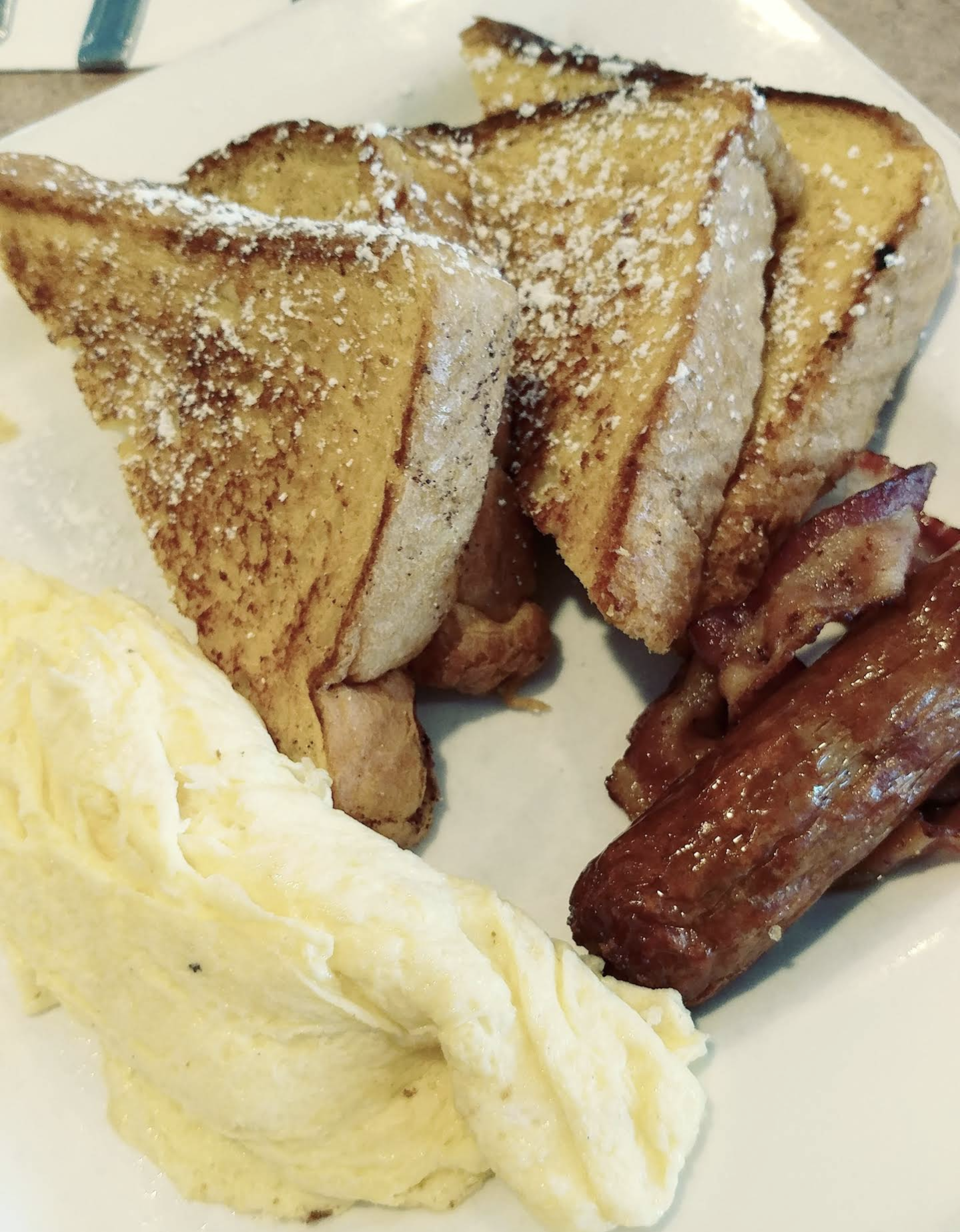 As for the food, the chicken and waffles were a bit underwhelming. It tasted more like a frozen chicken tender with a dusting of powdered sugar, which was a bit of a letdown. On the other hand, the steak and home fries were decent, though we did need to add a bit of salt and pepper to bring out the flavor. I was hoping for the home fries to be more on the crispy side, but they ended up a little soggy instead.