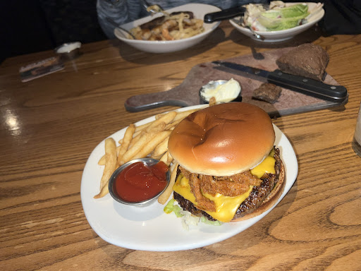 Ā Ā Ā Read moreI went for lunch with my mom and as soon as we walked in we were greeted the most authentically sweet , the most beautifullll and loving woman I have ever met !! I wish I would have grabbed her name just so I can tell you all !! Her energy was so mesmerizing & wonderful to experience š„°š„° She should be teaching a class on how to greet customers, because she has that down packed man , I swear !! That already set the tone for lunch to be great !! Our server was also amazing, so sweet and attentive!! She seemed to be behind the bar and still had time to constantly check on us and ask how we were , she always remembered the extras we ask for and I appreciate that. The burger was definitely amazing , perfectly constructed and surprisingly heated up very well to eat for dinner !! Only con was that the blooming onion bits were a tad bit too salty but other then that I would definitely get it again. The burger itself was soooo juicy & flavorful š„°š„° Even the people who brought out things and other coworkers seemed to be so nice and respectful š„° Definitely a 10/10 experience and I could be picky so I definitely mean it when I say that. My mom enjoyed her...