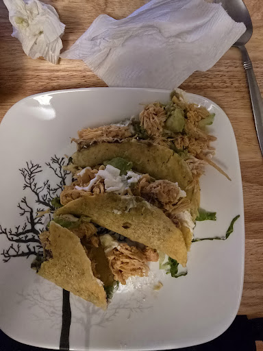 We came on a stormy night because we've passed the place in our travels and thought it looked nice. It's homey, bright and inviting inside too. The young man, who I assume, is the owner was friendly and generous. The waitress was sweet and efficient. The food was absolutely delicious! I ordered a small bowl of corn tortilla soup because the reviews of it were fabulous and the waitress said they could give that size which is not on the menu. It is as good as the reviews say. Excellent! They also gave my husband and brother in law a smaller portion to enjoy for no charge to taste. As main courses, I had a taco salad with chicken. The salad was fresh and delicious and the chicken was so tasty and juicy. The guys had fish, pork and chicken tacos and loved them. Our only regret was that our appetites wouldn't let us eat more because everything sounds great, so we'll have to come back! The margaritas were delicious and potent! I couldn't finish the second one that I couldn't help ordering. And then to top off the lovely experience they bought all three of us a full order of flan for dessert, again no charge. Maybe that was because the place was mostly empty due to it being a Monday night when it was absolutely pouring but they still had constant calls for take out. We asked and they also do all the delivery services .... grub hub, Uber eats etc. The gentleman said they use them all because each runs different specials, which I thought shows how they care about their customers. A great dinner, service and atmosphere. If you've passed by I'm sure you've noticed it. You should give it a try. They opened a few months ago and deserve to succeed! It's our new favorite Mexican place and fills the need for a place that doesn't feel...