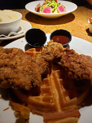 Read moreHad a very find dining experience. It was my husband and I first time going. We chose from the very diverse brunch menu. Excellent wait staff, I wish I could remember our particular waitress name, but I never saw her name tag or caught what her name was, but she was exceptionally good. Great personality and made sure to check on us from time to time to see if we were OK. I love how quickly the food was brought out to us, starting off with the basket of a variety of baked breads/ pastry , ranging from croissants to delectable scones. All of which were so moist and fresh. .y husband wanted a bourbon. He chose the most scrumptious bourbon drink that included Irish cream, bourbon and was adorned with a piece of waffle. The presentation of the food was very impressive. A friend that brought us there and had recommended the restaurant chose a salad that she wanted to add tuna too. Her request was readily accommodated. I had chicken and waffles. Generous proportion and chicken was tender, I felt it could have been seasoned a bit .ore to my taste, but the BBQ sauce that accompanied it, made up for the lack of season. My waffle was light and fluffy, however, I would have liked it to be warmer. I think that it was my only complaint, which I didn't bother to voice to the lovely waitress, because she had already gone above and beyond. My husband chose the cinnamon French toast. Delicious!. The portion was so generous, he had to take some home, which made it possible for me to have a taste later. The restaurant itself is impeccably clean. My husband came out of the restroom and was very impressed at the cleanliness of it. I too had the same experience when I visited the restroom. They also have effective covid protocols in place, ranging from mask requirements, ample hand sanitizer stations to social distancing. Loved the ambience with dim lighting and various choices of seat selections that include sitting at the bar or extended bar to 2 person seating to larger tables with rounded cushioned benches. Outdoor seating is also available, weather permitting. I would highly recommend this place. My husband and I have added it on to our list of must do again...