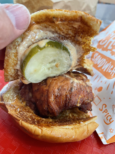 Ā Ā Ā Read moreThe drive thru line was long so I opted to eat inside. I recommend you park just as you get in the parking lot as it can be difficult to leave with the drive thru line blocking so many parking spaces. The place is new so I expected some hiccups with the service. The cashier/order taker was a bit slow, and struggled counting change. The cashier handed me the wrong receipt which I didn't realize until I heard someone yell my name after no one had responded to the order number that was called out. The food came out pretty quick though, only about a minute wait. The counter at the self serve drink area was a bit messy. Seems like no one's been assigned to maintain the dining area. The food was very good though. I had the two piece combo, dark meat, with a side of Mashed Potatoes. The food was served hot and fresh. The chicken was flavorful and juicy. The Mashed Potatoes were not dry and the Gravy was not salty. My only complaint was that the biscuit was a bit dense, and a little on the salty side. I was fortunate to beat the line when I ordered at 1pm. Seems like the restaurant got really busy after i had ordered. I speculate everyone had the same idea I had when I saw the long drive thru line. The menu prices are about average for what other fast food places are charging for a combo meal. My combo meal with a drink...