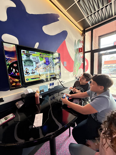 Read moreKinda confused how they have a 4.9 star rating. The food is bad, the atmosphere is bad, and the service is meh. Let's be honest you're getting food cause you're high. If that's it then sure go for it. But it sits like a brick and they don't give you free cups of water. It's like they're telling you to leave without telling you to leave. If your value added is that you get to sit, eat, AND play videogames then make it hospitable to actually sit and eat. This place could be 4 or even 5 stars if they made water free, maybe moved the tables a bit so you're not stuck next to the kitchen, and made the doors not a push pull push situation.