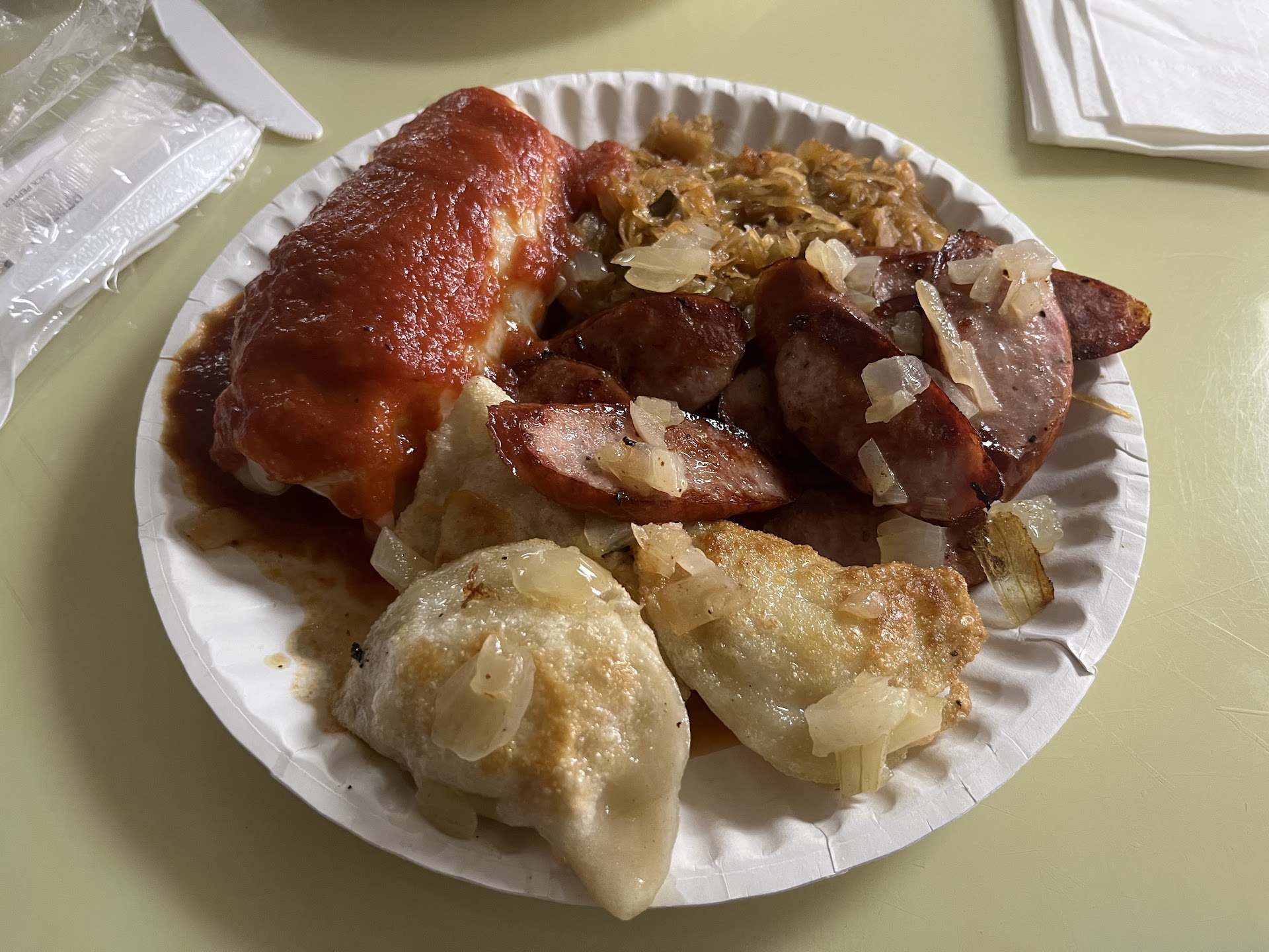 Read moreSo happy we found this cute little place! We ordered a Polish Plate, which had Keilbasa, Pierogies, Stuffed Cabbage and Bigos. Alot of food,but so worth not sharing with anyone! We also split a plate of delicious Potato Pancakes. I dont recall talking much, just eating and enjoying every single bite. The young man who took the order and the 2 women in back cooking all were pleasant to us and let us just stuff our faces without interruptions :) We ordered Blintzes w raspberry sauce for dessert. Yummy! Will definitely be back again-soon! We also left with some apple cake for tonight and a few other goodies. Definitely worth the trip for authentic...
