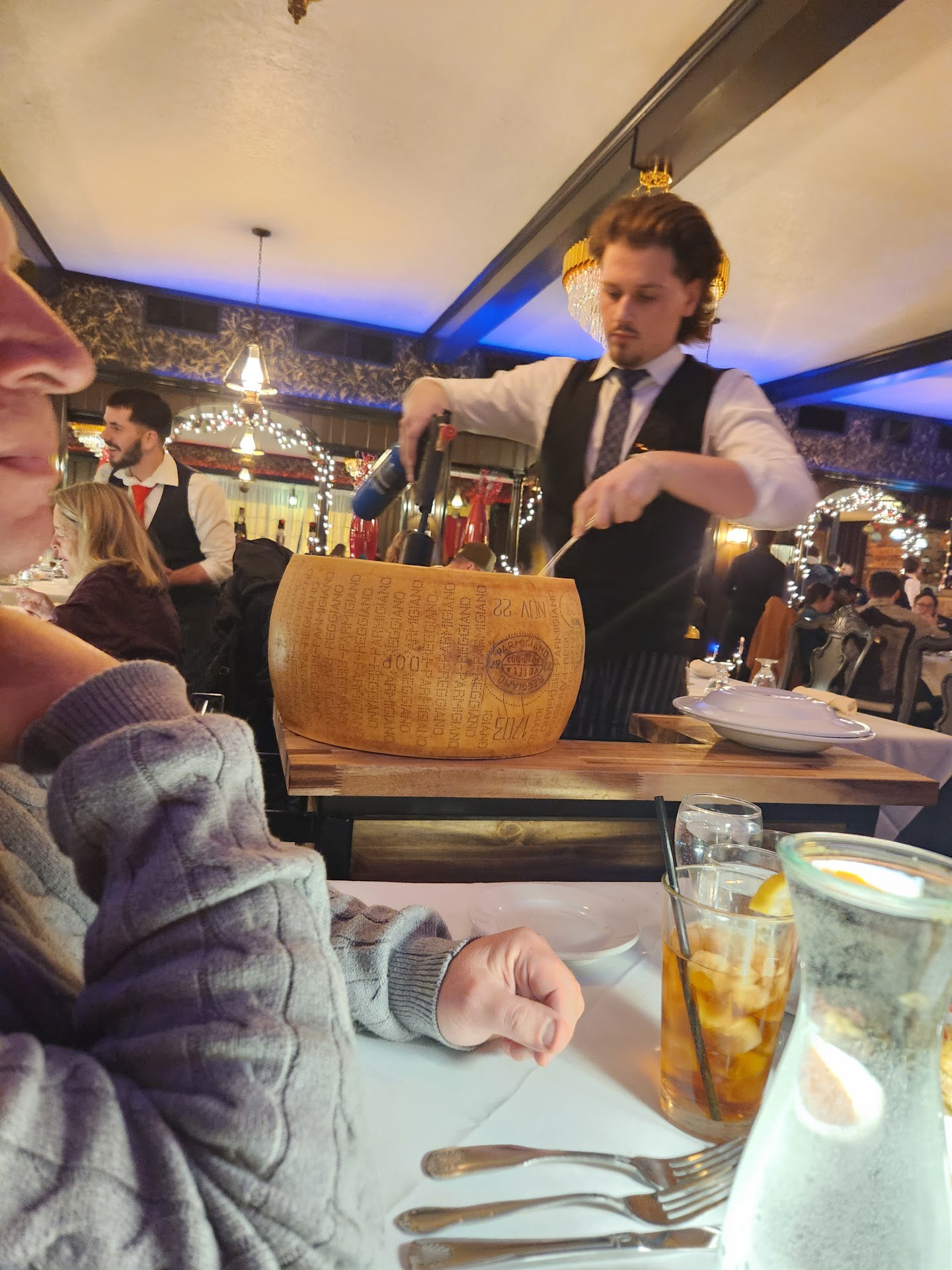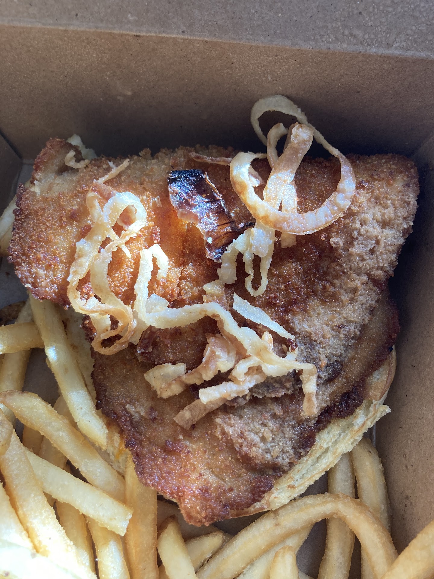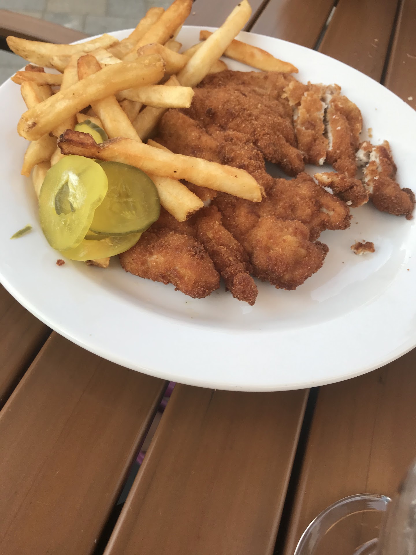 It was our first time here, and we stopped on a whim. It is a 'nicer' restaurant and I felt underdressed in shorts and a sweatshirt. The menu is posted by the door, and I noticed it was pricey but patrons leaving were wearing basketball shorts and t-shirts. The hostess asked if we wanted to eat in the dining room or bar. Although outdoor seating was available, it wasn't offered to us. Due to my attire, I chose the bar. The bar area has a long bar, and tables which are dark. The tables are covered in linen with linen napkins. The area is very loud and between other patrons and the music, it was hard to hear. The menus were hard to read as the font on the printed copies were tiny. I had to take pictures with my phone to enlarge it. We were brought a basket of bread, and a tomato tapenade? I'm not sure as I can't eat tomatoes. The server was pleasant and knew the menu well. She was busy as she was covering the bar area, and the patio. My partner ordered one of the specials, short ribs. I don't like saucy foods, and try to eat low fat. Most of the items on the menu are sauced. I decided to have the veal schnitzel, with spaetzle, and red cabbage. I asked my server to request the spaetzle was lightly buttered. Now, I imagine schnitzel as a thinly sliced, breaded, and fried veal or chicken cutlet. What was presented to me was surprising. It was the above, but it had fried onions on it and was swimming in brown mushroom sauce. The spaetzle was replaced with mashed potatoes which weren't mashed well as there were large chunks of potato throughout. The red cabbage was also covered in the brown mushroom sauce. I ate a small piece of veal (or chicken), and it was tough. My partner had the short ribs which he said were fatty, but the presentation was similar to mine with brown sauce and mashed potatoes. I guess I should have asked the server to describe the plate when I ordered it, but wouldn't have guessed it to be sauced as it wasn't described as that on the menu. Now, one positive is the size of the portions...which are huge. They had live entertainment in the bar, and once started, the sound level went even higher. Based on all the positive reviews, I am at a loss. Maybe we came on an off night. But my suggestion is to ask your server to describe the meal you order and unless you're with a rowdy party, don't...
