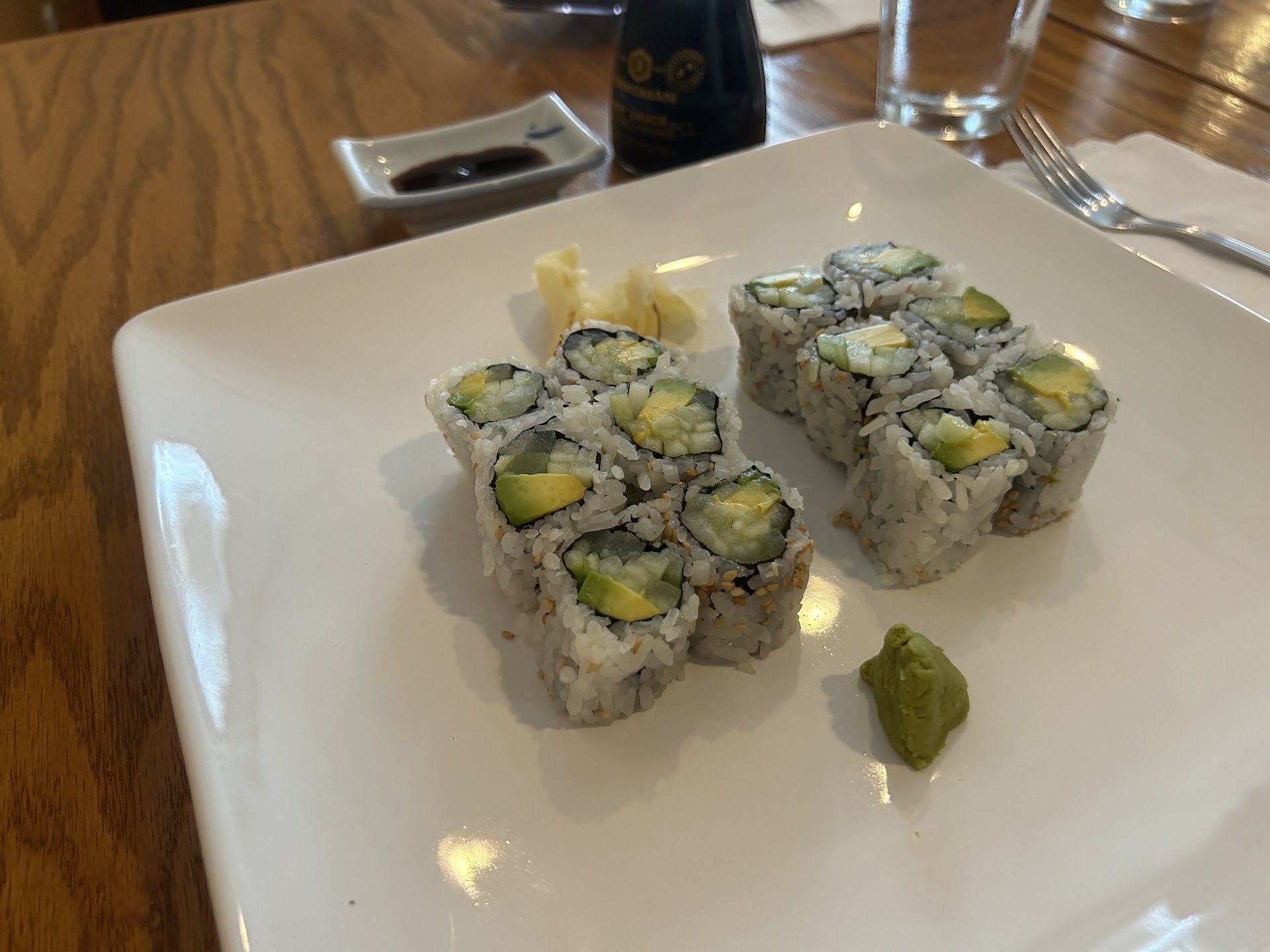 A lot of the dishes were quite expensive so I suggest going when the lunch menu is served (on weekdays– the one you see as the menu images) We went on the weekends at a time when there was no one, and ordered avocado + cucumber roll sushi (which in my experience you cant quite go wrong with) and chicken breast in a cream sauce with some vegetables (and came with rice). the chicken was liked by the people i came with ("I really liked the chicken!" they said).