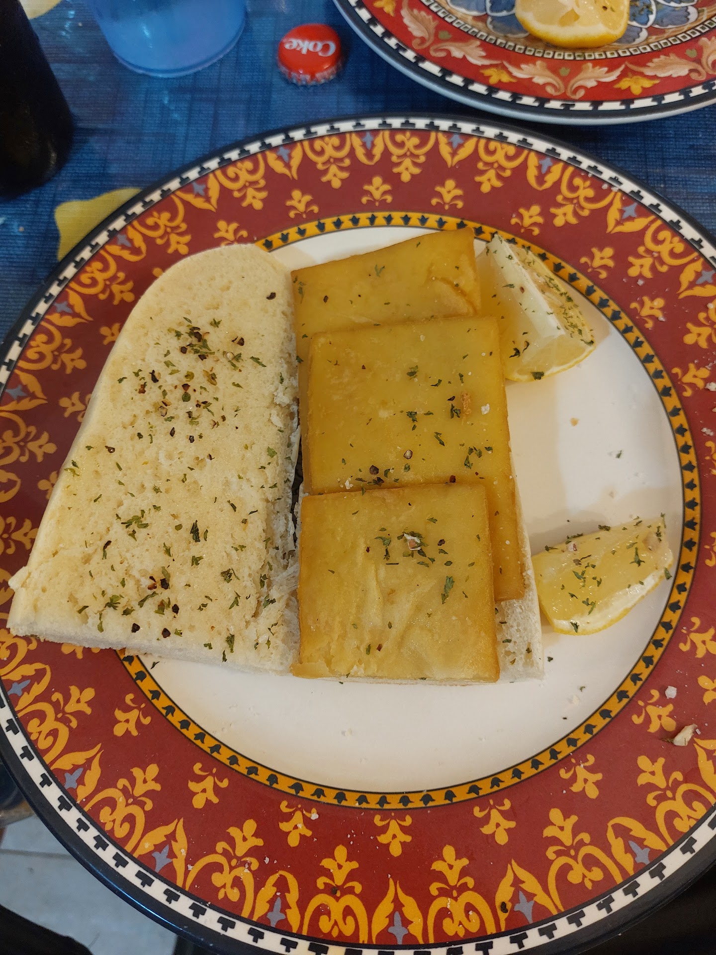 What we got: homemade pasta Pomodoro, with fried eggplant. Eggplant stacks. Grilled octopus. Homemade pasta with meat...