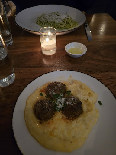 The servers avoided eye contact when we were looking for someone to order from. The bread and butter was $6 for 4 small pieces of bread and very yellow-colored (not fresh) olive pil. Our meals were fine. Nothing special nor poor to report on. Dessert, however, terrible. The $7 sorbet was one (small) scoop. The server appeared irritated when we asked about the serving size compared to the price. The tiramisu was a soggy mess. It was as if someone plated the tiramisu and then added water to the bowl/plate/blate it was served on. The servers were not phased by our disappointment.