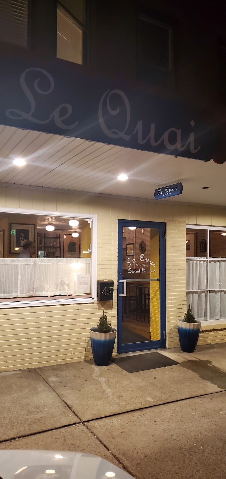 My group of four ate dinner here in late April 2024, on the recommendation of one of the couples. Loved everything about Le Quai! The menu changes frequently and centers around classic bistro dishes. One member of our party opened with the mushroom soup and raved about it so much we all had to try a spoonful. She was right! I had the calamari. Having made this at home I know how to cook it so it's tender, and the chef here got it absolutely perfect! Drizzled with a delicious sauce, with some greens and strips of fennel decorating the plate. For my main I went with cod nantua, which came with shrimp and sauteed potatoes and other vegetables and another great sauce. One person had the rabbit tagine and pronounced it "fabulous." Another had the beef bourguignon. It came to the table in a miniature cast-iron casserole and was piping hot, beautifully tender, with unctuous gravy. For wine we inquired about a Sancerre, but our host, Robert, suggested a very similar white, which we found easy to drink and a good accompaniment to the food. The staff were totally professional. For example, once the orders for the mains had been taken, our server returned and re-set our silverware to match (like adding a steak knife for the beef). And our water glasses never became empty because a member of staff would simply materialize and quietly fill them. Robert, the owner, is great. He exudes hospitality. We arrived slightly ahead of the other couple and took seats at the bar.. Within seconds Robert made us feel welcome and cared for, as if we guests at his home. He has, we learned, years of experience in restaurants, and it shows in the delicious food and efficient team he has assembled at Le Quai. On the Saturday night we were there they were only half booked, but as there are not many tables, make a reservation! One note: the only alcohol on offer is beer and wine, but the wine list is quite extensive. I recommend getting to know Le Quai before it becomes so popular that reservations are hard to get. Given the quality, generous portions, and fair prices....it won't be long.
