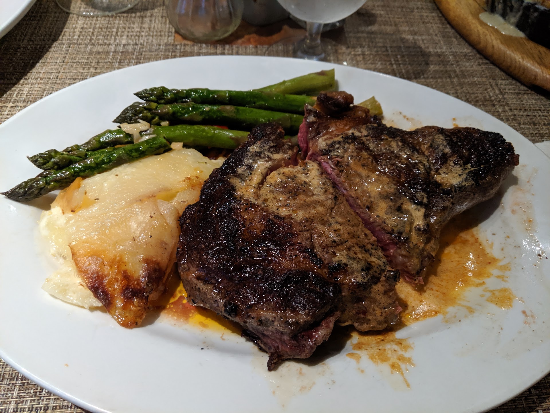 I ordered online, possibly that was my first mistake coming here. I ordered the Sirloin and Shrimp Scampi. I ordered it medium rare. I arrived to get my food on time and waited for 5 minutes to get noticed then 10 minutes total until i actually got my food. I was with a companion and had to wait another few minutes before he got noticed and then waited until he got his food. I also got an appetizer buy the way, I've always been a fan artichoke dip so I got that.