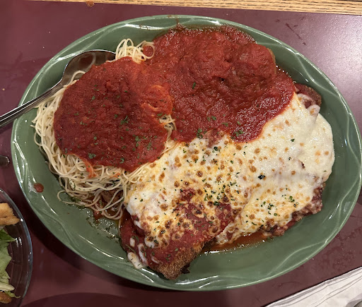 The Trio Italiano left a lot to be desired and I left most of it on my plate. The sauce tasted like Sysco canned Imperial Marinara sauce with some added spices. It did not taste like an authentic Italian sauce to me, actually it tasted more like a pizza sauce with its more thicker paste-like consistency vs an Italian marinara sauce that tends to be chunkier and more flavorful. I asked the owner if the sauce contained added sugar and he said yes, while a small amount of sugar helps to reduce acidity in “lesser quality” tomatoes, most traditional sauces do not add sugar. I left most of this dish on my plate untouched. It also came with meatballs that were clearly frozen and from Sysco as well. You can always tell frozen meatballs because they are all exactly the same size, shape and texture. Home-made meatballs are much more tender, never exactly the same size and have a better consistency.