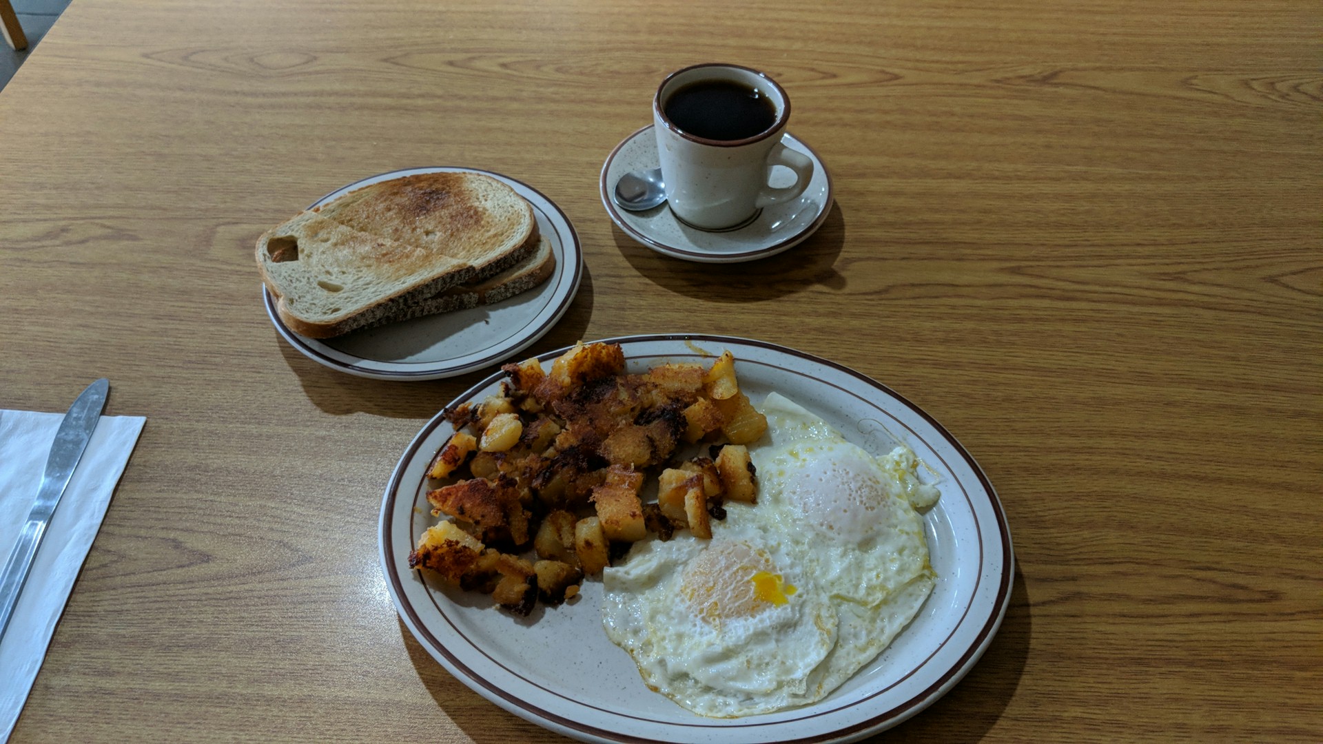 Read moreGood food, typical diner menu... a little short which is sometimes good, great prices, family atmosphere, lots of locals some in pajamas lol. Plenty of parking, food came out quickly and nice and hot. Waitress was just awful which is why only 4 stars.... almost made it 3 stars she was so bad but maybe we were just unlucky with that one employee... we came during a rush which wasn't terrible but she seemed overwhelmed and flustered. Two sets of dirty cutlery under the table, never checked on us after ordering, never refreshed coffee, screwed up my wife's order and couldn't catch her to correct it.... had to get up and literally chase her down, then she didn't go in and correct it immediately but continued bussing the four.... only four tables she was having a hard time serving.... by the time the 2 hot sausages came from the kitchen we had finished our meals and gotten another cup of coffee by going to the counter.... it was bad but maybe she was just having a bad morning or trying to do too much rather than paying attention to diners needs. Whatever, still a good meal, good prices at a good place and we...