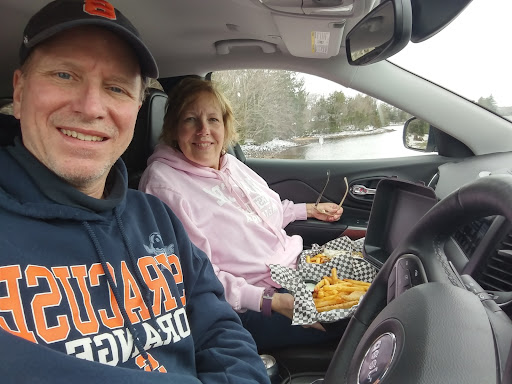 The people were friendly for sure. It's a very nice location if you have decent weather. Beyond that, the only reason to go here is because there isn't any other option. He had dinner, asked for a water with lemon and a coke. The lemon had mold on it.