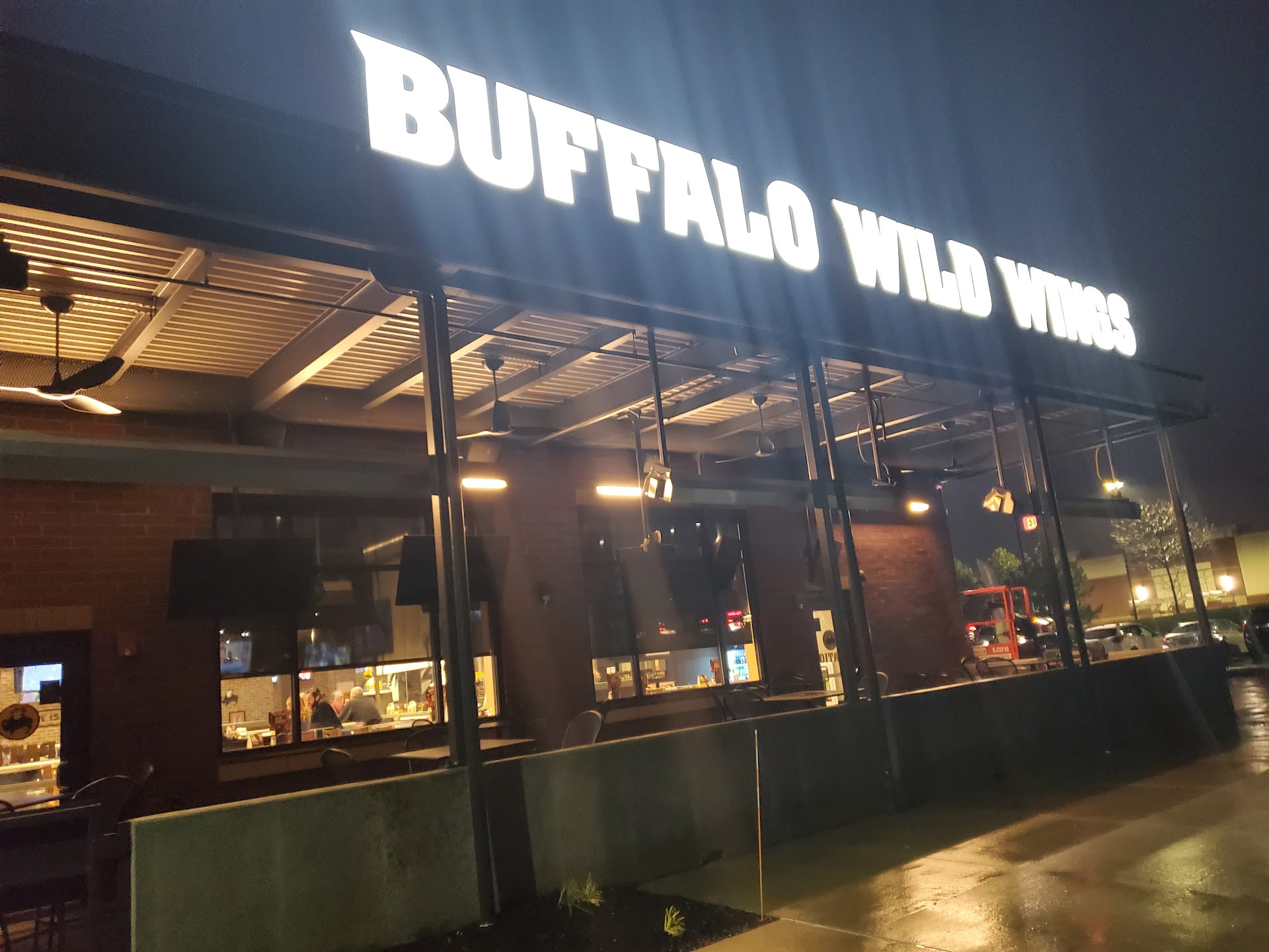 After waiting three weeks for the dust to settle with the opening of this new location, my wife and I stopped in at the new Buffalo Wild Wings in Webster (NY) on a busy Friday night. Getting a table was fairly easy - we opted to sit outside because the multiple TV screens inside were overwhelming and uncomfortable to sit close to. And it was slammed.