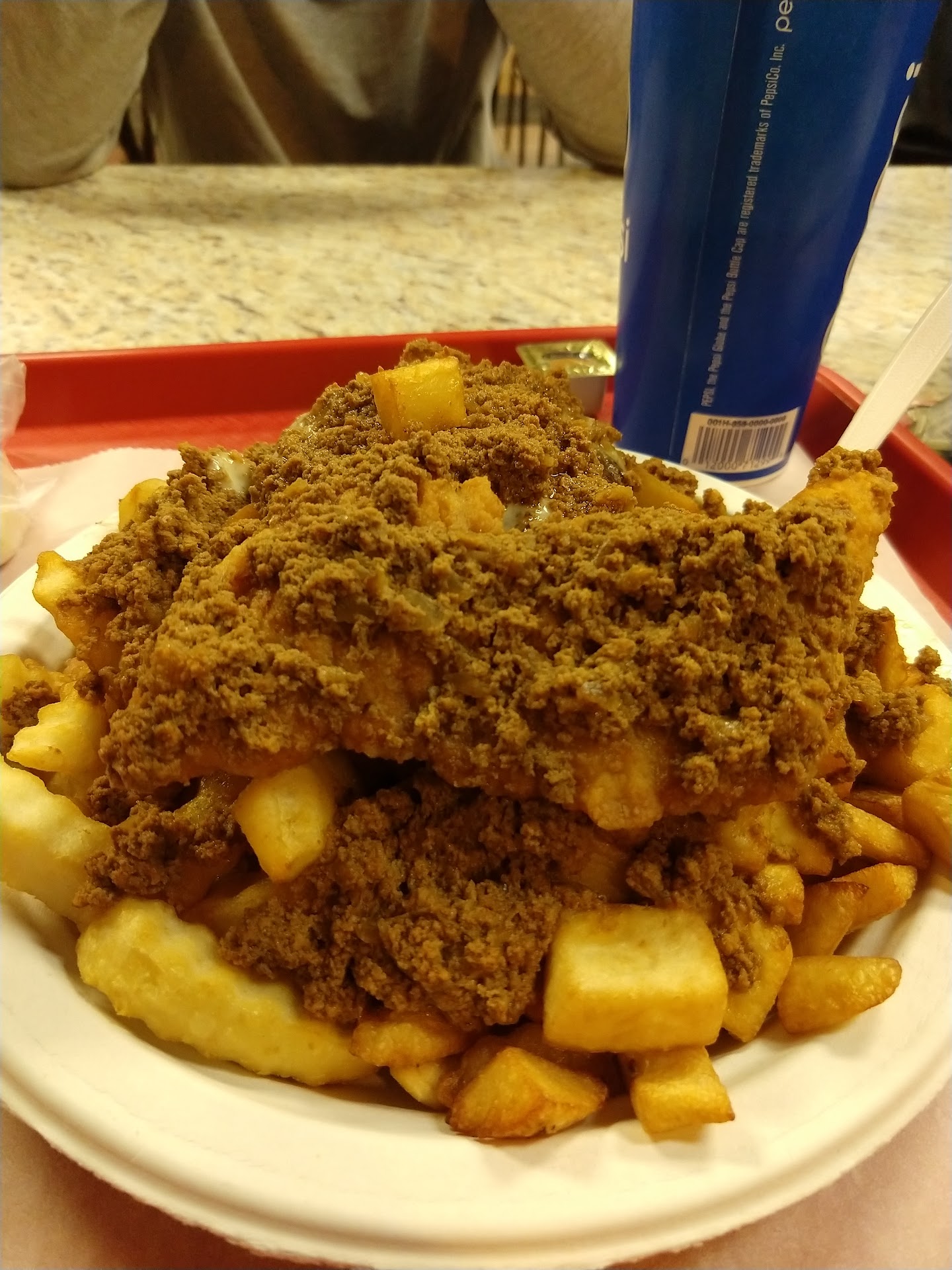 Read moreFirst time visiting here. The service was great and very friendly as they walked me through their options. The seating was very clean, well lit, and even has something playing on the screen. The kitchen looked very busy (you can see directly in it) while we were visiting. It appears this place is busy and that was a sign of their quality dishes. The menu had lots of great options and I settled on a trash plate with chicken, cheeseburger, over a double order of fries. I'm not a Mac salad fan and was bummed they didn't have Mac and cheese as an option. Overall, it was a great visit and I recommend you give it a try. The clean facilities and clean kitchen assured me this is a "safe" place to eat. My only gripe was the seating area, it made it difficult to converse without being inches away from another table. I give it 4+ stars, especially if your ordering...