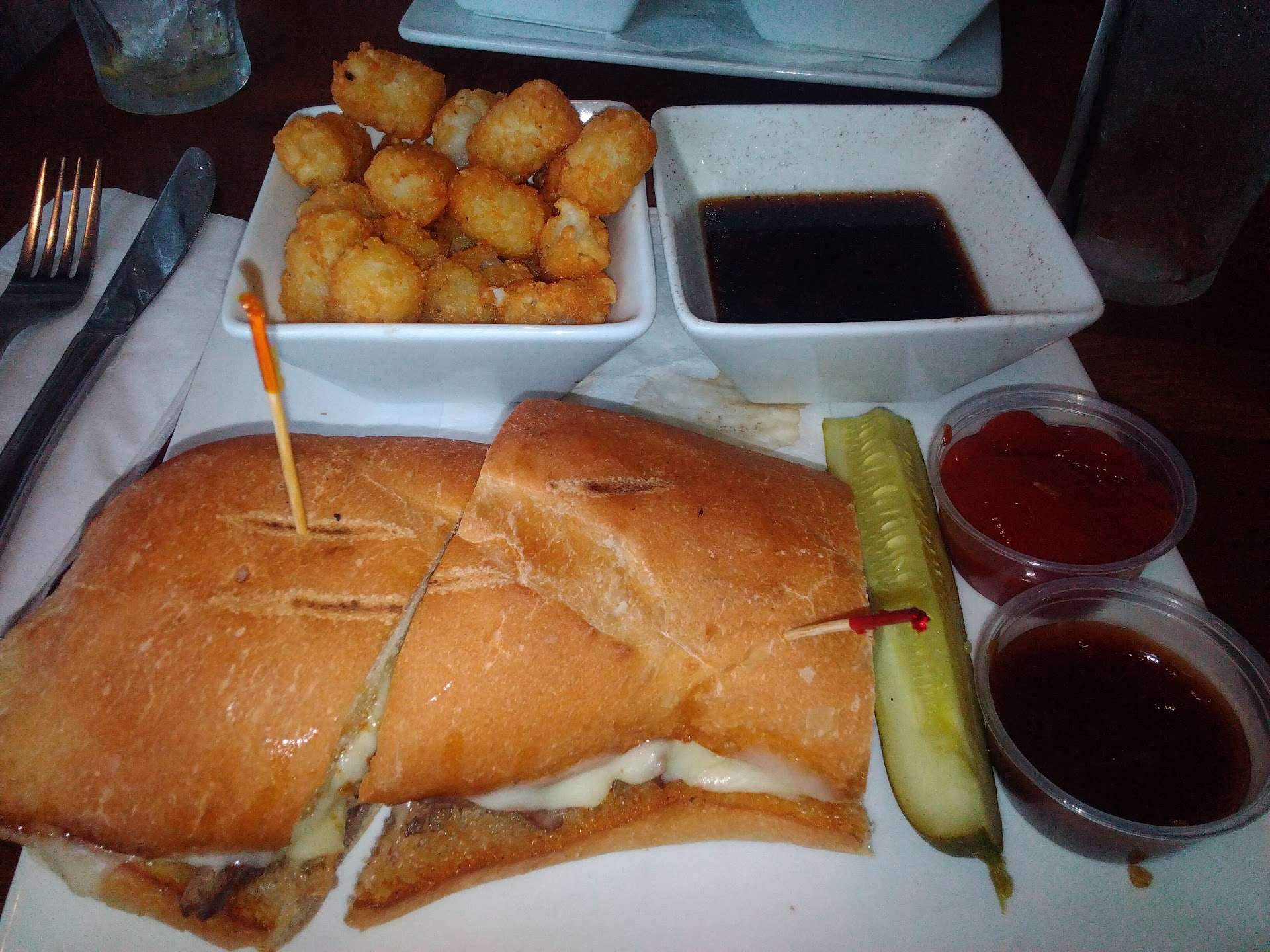 The sandwich on the other hand was quite good. I only had a bite, but the bite I did have made me wish I had gotten anything else. The bread was toasted nicely and chicken was cooked properly and the dipping sauce had good flavor.