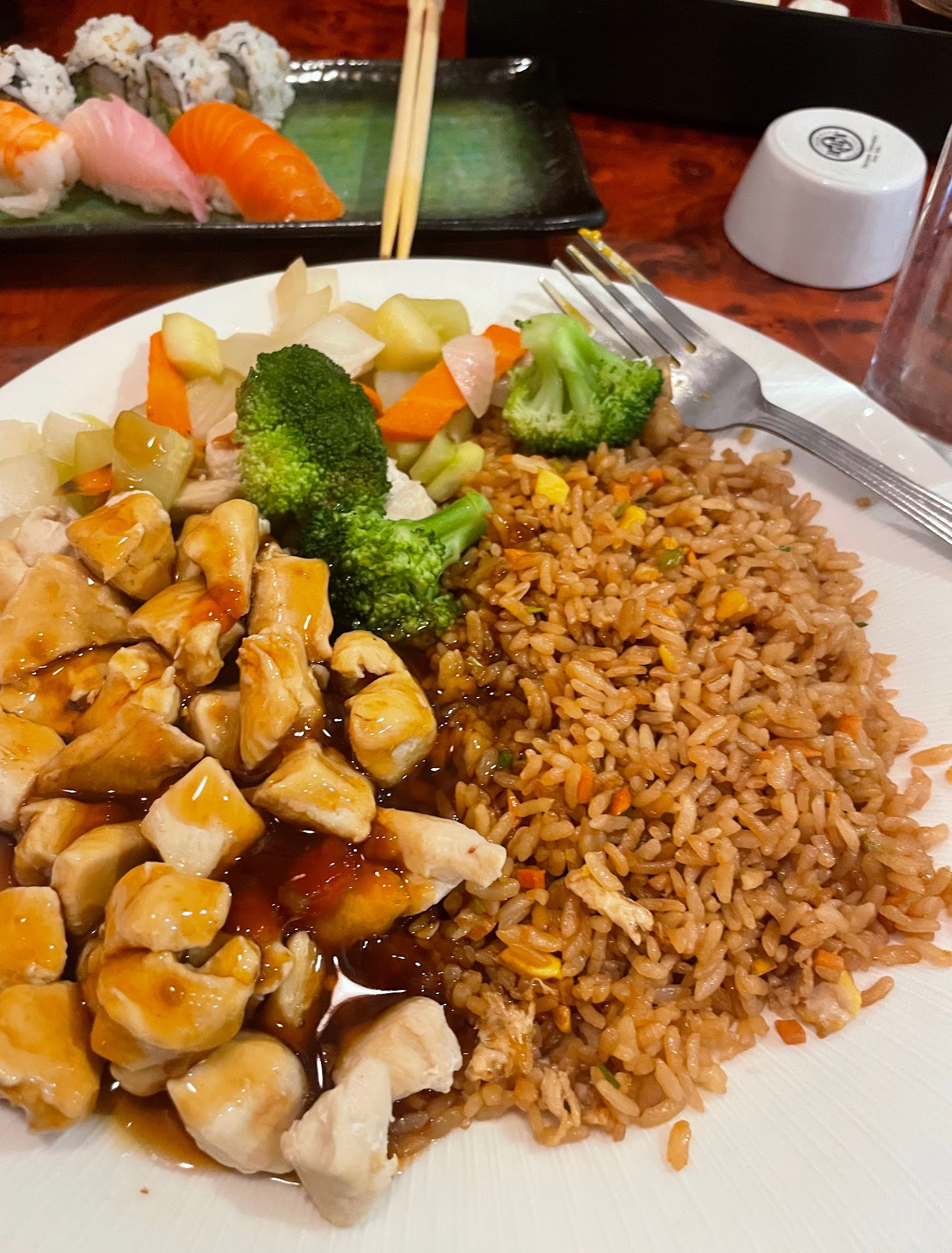 My sister, mom, and I got take out from Taka House because it was close and we had been recommended it. I ordered a Chicken Teriyaki Bento Box and that basically was: a California Sushi Roll, teriyaki chicken dish, 3 small dumplings, an egg roll, and a salad. The sushi roll (which my mom ordered too) was delicious, as we agreed. It was very well prepared and the flavor was great. The teriyaki chicken was just baked chicken with some steamed veggies with teriyaki sauce dribbled on top… it genuinely wasn’t anything fancy and the meat was tender but it was just chicken pieces with small veggies and sauce. The dumplings and egg rolls were really cute and tasted very yummy! The salad with literally iceberg lettuce with this chunky orange sauce on it. It definitely wasn’t appealing to the eye but my sister ate it and enjoyed it. So overall from this experience I can say that the Sushi Roll was really, really good and I would have it again, the Chicken Teriyaki wasn’t anything amazing and was very basic so I wouldn’t order again but it wasn’t disgusting or anything. The dumplings and egg roll were really good so I would 💯 order that again, and the salad just didn’t look appealing so that would be a no go. For the atmosphere the seating looked very cozy and the cultural music/decorations gave it an authentic feel. The woman who gave us our food wasn’t too friendly but the waiter who was going around seemed very kind...