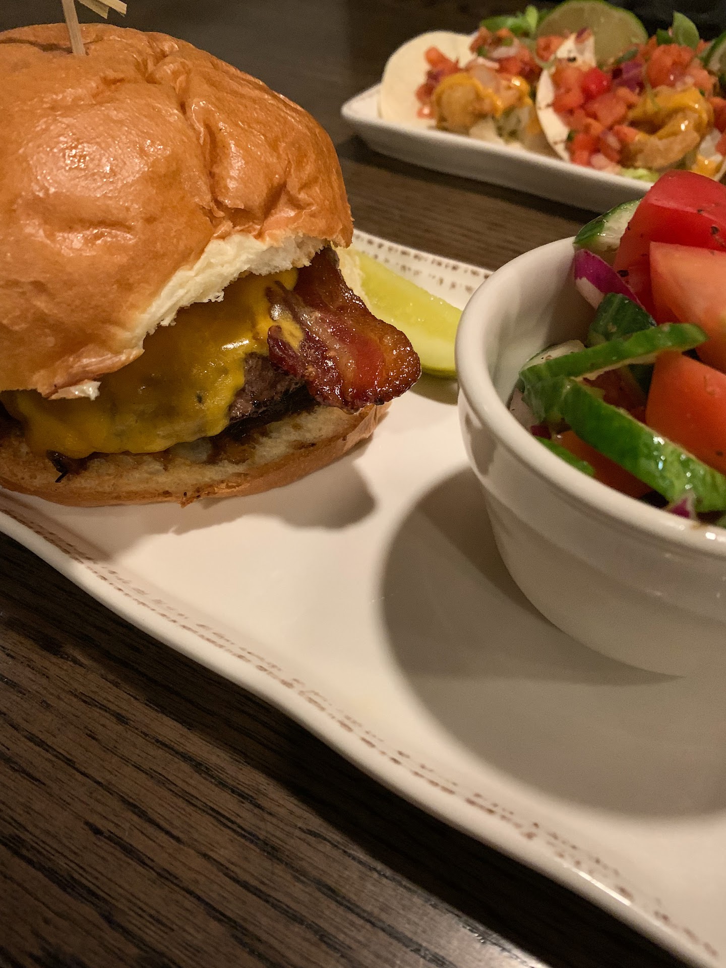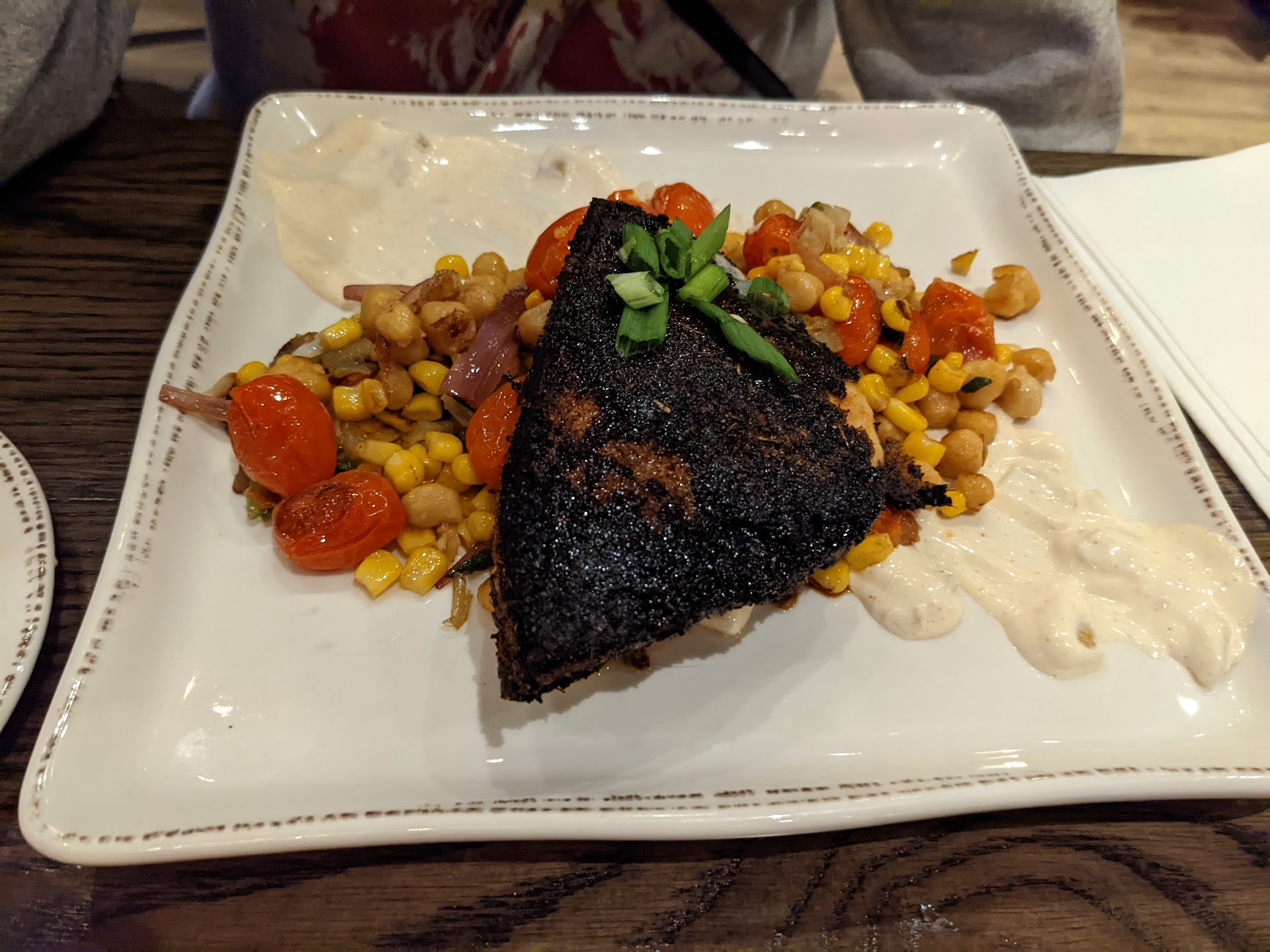 We didn't wait too long for the table. The bar area was really nice. We were taken to their downstairs seating area for dinner which was also nice except for the 3 huge TVs on every wall. It didn't make sense. Maybe downstairs is going to be a bar post pandemic. Who knows...the TVs took away from the ambiance of date night at a nice restaurant. We don't need two huge screens showing golf and another playing behind the music.