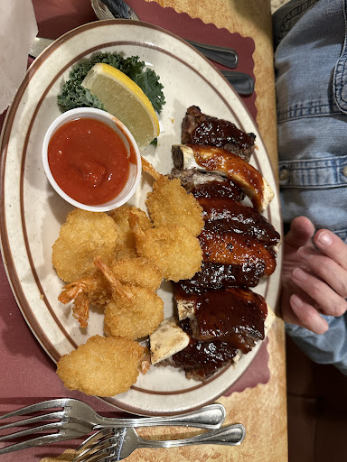 By the time the ribs came out was already feeling full. Ordered BBQ but they had a honey dijon option. Ribs fell off the bone and were amazing. Powered through but no room in the stomach for a re-order. Wife got the same except she got the ribs/peel & eat shrimp combo. She wasnt able to power through and had a to go box.