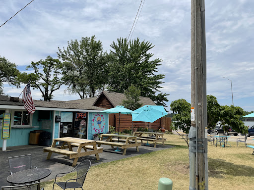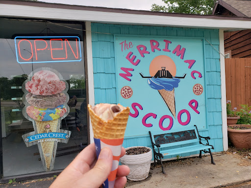 Read moremid August weekday waiting for the ferry. Cedar Crest Ice Cream, many varieties of this native Wisconsin brand. Food, mostly pizza, only served on weekends. great & plenty outdoor seating on a beautiful day. Cornhole game is another option while passing time. Plenty of parking. Gentlemen inside was very helpful with our ferry questions. Takes 9 minutes one way(18-20min ttl time) to get across the river via ferry. With our ice cream we walked on and left our car parked at Merrimac Scoops. He said it was fine to park & then made great cones and dishes... so...