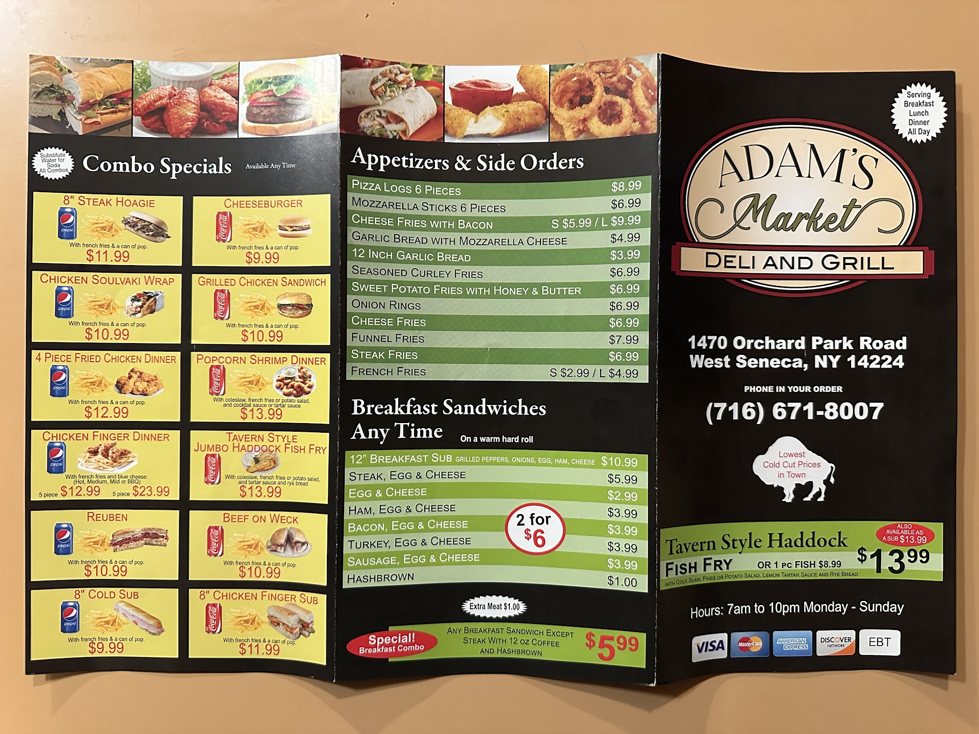 Read moreUpdate March 22. 2025 Just picked up Ruben sandwich..... Unbelievable...... Excellent size and amounts of meat... Cheese ... Thousand island... And kraut. I love this place...... Beef on wreck next item on menu.... If you don't care going to a noisy bar or restaurant or paying more for nasty fast food at the big chains and want a meal to take home and enjoy.... ADAMS MARTS the place