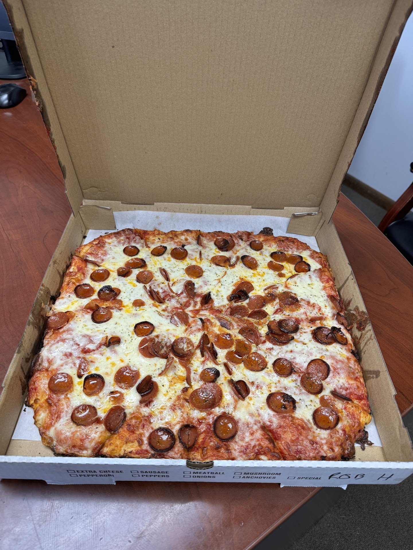 While I don’t find myself in the Buffalo southtowns often, I was down there this past Thursday and grabbed a large cheese & pepperoni pizza and an order of fingers and fries to take back to the office to share with everyone.