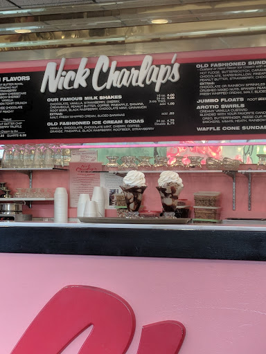 Read moreI was headed to a graduation and arrived to the area a bit early. That gave our family plenty of time for ice cream. When we first passed the building we didn't know it was an ice cream shop. You can see the Nick Charlaps sign pretty well from the street but not the ice cream sign. The ice cream was really good. I had a turtle pecan sundae and could tell that they use real caramel. I had the regular size which was huge so I guess it just depends on how much ice cream you can eat. My daughter had the same sundae but asked for a small, which was probably a good idea. It should also be noted that this business has a candy shop too. I didn't get to try any of it but they had all manner of chocolate, including...
