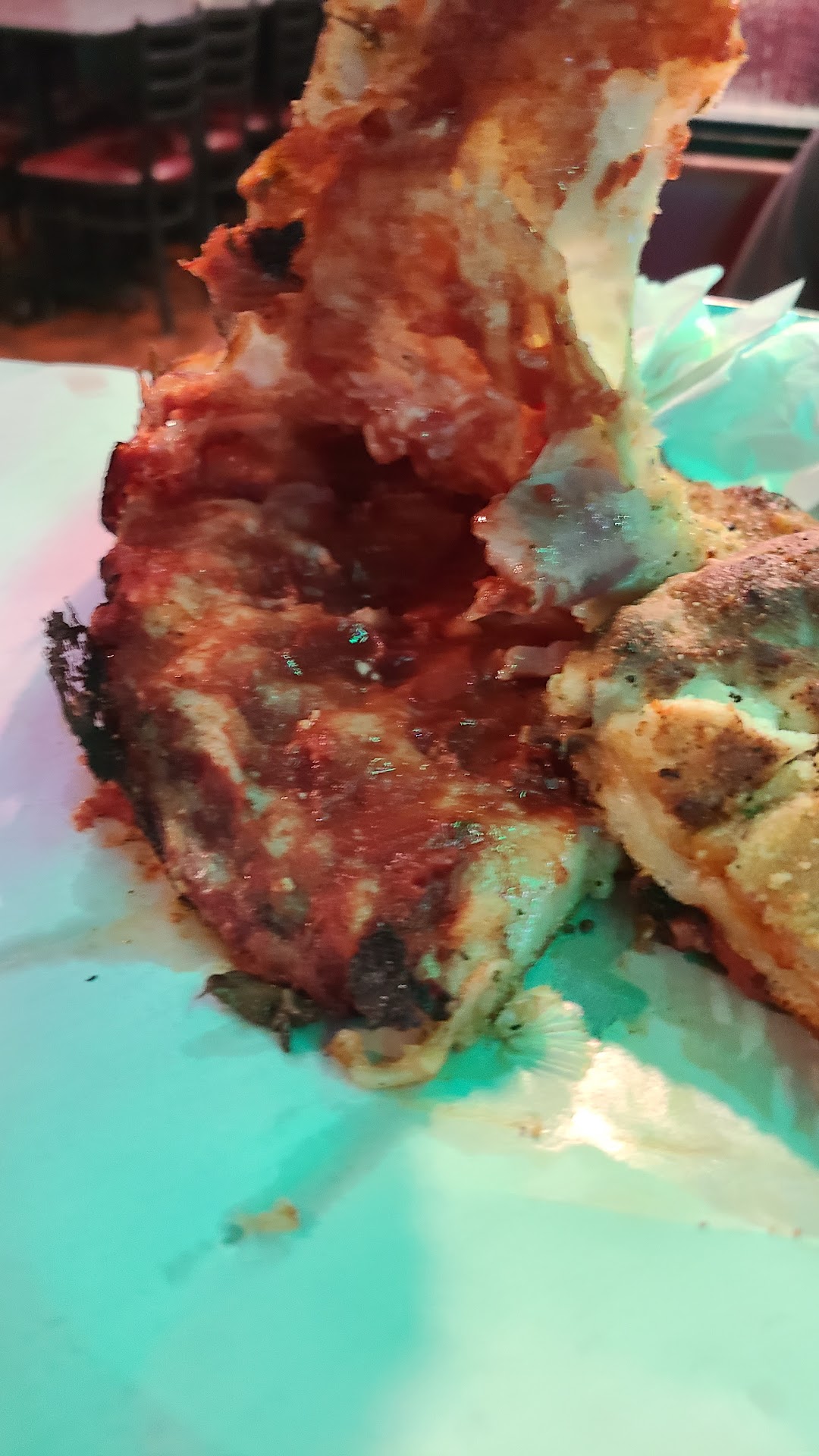 I’ve been coming to this pizzeria for over 10 years, but after this experience, I’m done. I picked up a to-go order of 15 medium wings, and when I sat down in my car, the box leaked everywhere - on my jeans, the seat, and the floor. There was so much liquid that it poured out. Luckily, I had a garbage bag in my car, or the mess would’ve been even worse.