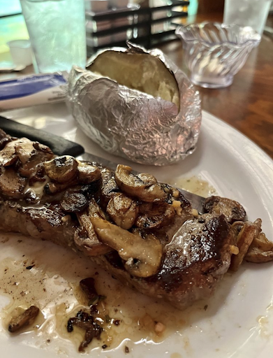 A friend had the same steak with sautéed mushrooms, and it looked juicier than mine. But probably tasted about the same haha.
