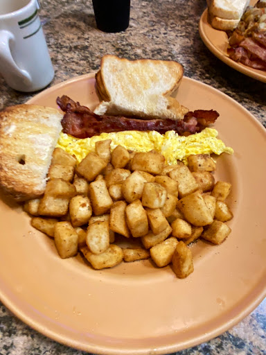 The food: the missus ordered the sausage and gravy over biscuits. I ordered two eggs, sausage, home fries, and rye toast. The service was great- we waited no more than 5 mins from time of order to food delivery. The meals, however, left a lot to be desired. The sausage and gravy was bland. The biscuits weren’t quite burnt, but very close. Four biscuits- very little sausage gravy. Quite dry. The other meal was terribly mundane. Poorly seasoned scrambled eggs, dry and uninteresting home fries. Awful coffee.