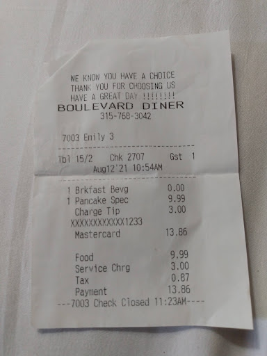 I for one will never go back to this BOULEVARD DINER for obvious reasons.