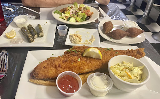 Read moreBeing Lebanese, brought up eating Lebanese, and being a foodie allows me to confidently give a 5 star rating! The atmosphere is an actual diner complete with counter, bar stools and tables, stainless steel walls and two very old speakers at either end, everything very clean and orderly. The staff was a woman and gentleman who were so nice but spoke broken English, so be patient! The food is excellent! It's fresh, traditionally prepared, perfectly cooked and delicious! The chicken fresh and done to perfection, grape leaves my grandmother couldn't do better, salads crisp and fresh. You get so much food. We will def. be back! I would only suggest background music as the air seems...