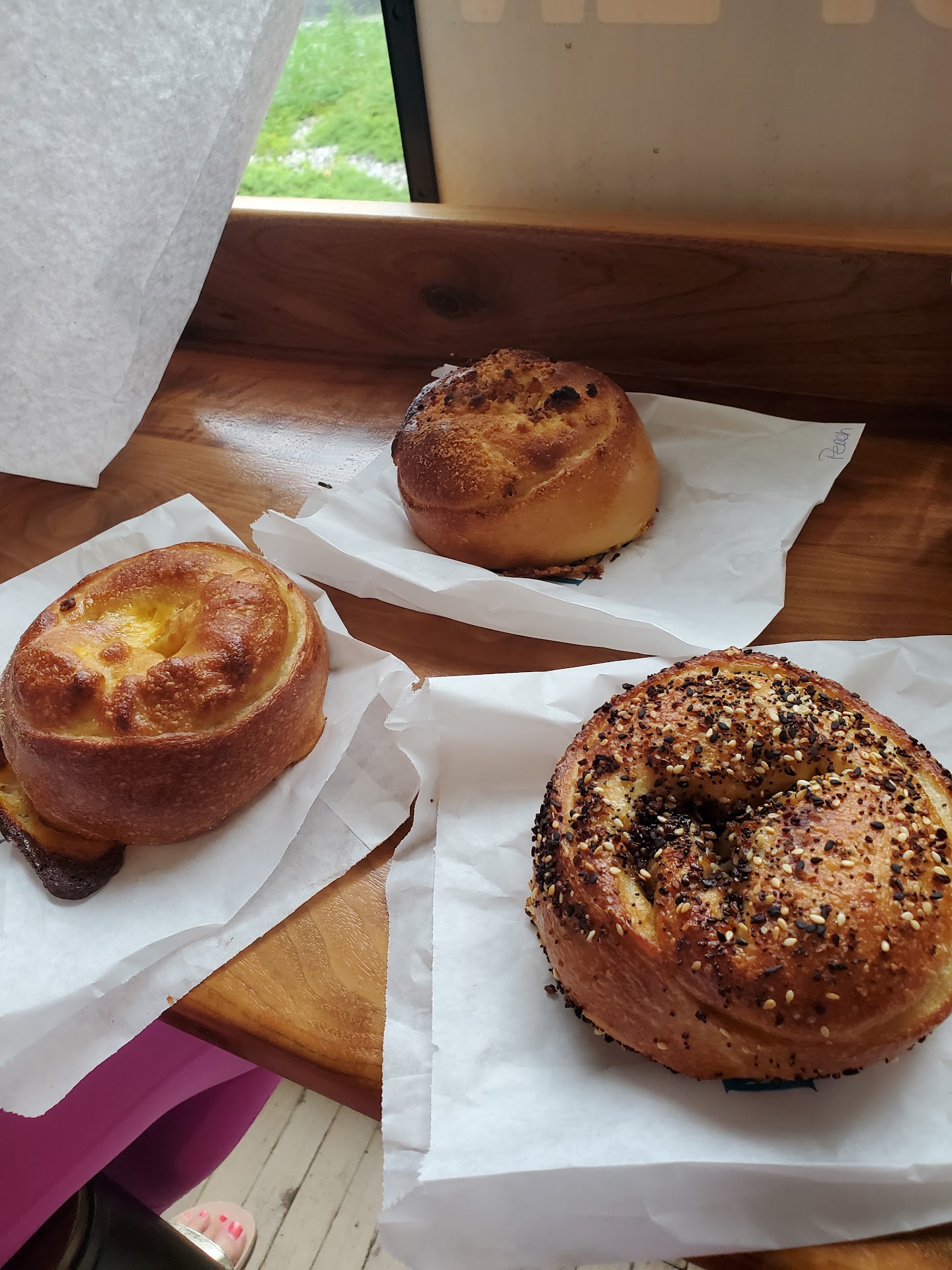 Read moreGot a BEC plain bagel, Reuben everything bagel, and the Peach Cobbler monthly special.