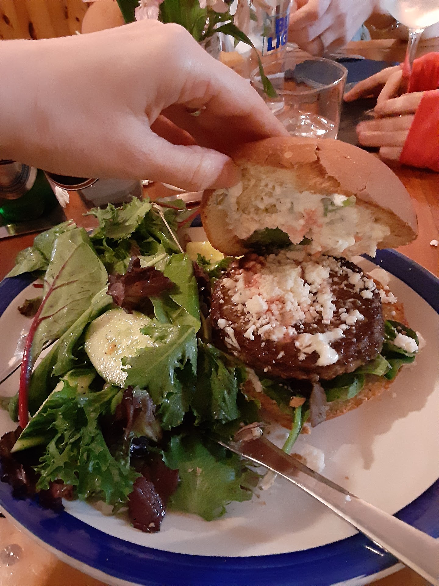 The newly glassed-in patio offered a delightful spot to watch the street below. Manager and hostess June warmly welcomed us, exchanging stories of old school names and setting the atmosphere for a perfect walk down memory lane. Our server, the multi-talented Mark, whose family's roots run deep in the town, was patient, witty, and engaging, adding to the nostalgic charm of the lunch.