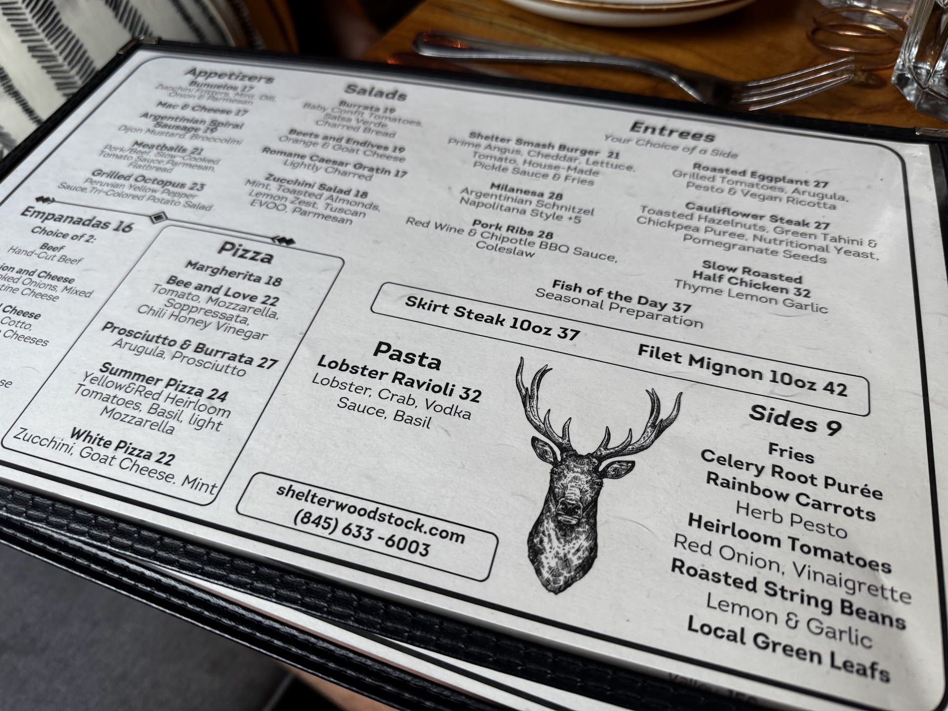 We went to Shelter last night for our first visit. Despite the heat outside the place had a fairly decent number of patrons inside. Although it was slightly cooler inside than out, the huge clay/stone oven kept this place just a tiny bit above uncomfortably hot. Luckily the couple seated near us was leaving and turned a box fan (that someone had placed on the floor) to face us. I donât know if I could have stayed if we didnât have that fan. Iâm so thankful to that couple!! đđđ Anyway⌠the service was slow. By the time we ordered drinks, after sitting for almost 10 minutes we were ready to order food, but the waitress said she was only taking drink orders at that time đŹ after another 11 minutes our drinks arrived and we ordered our food⌠40 minutes into our visit, we finally had appetizers on our table⌠but our water glasses and cocktails were empty⌠you get the idea⌠The food was tasty⌠but highly overpriced for the quality and portion. I got the âcatch of the dayâ. For $37 I got one piece of fish, and a side of green beans. My boyfriend got empanadas. He said they were tasty⌠but they were small and overcooked. His son got the eggplant dish that he described as delicious! My favorite part of the meal was the watermelon salad! So unfortunately because of the high prices, uncomfortable temps, and extremely slow service, I will not be going back to...
