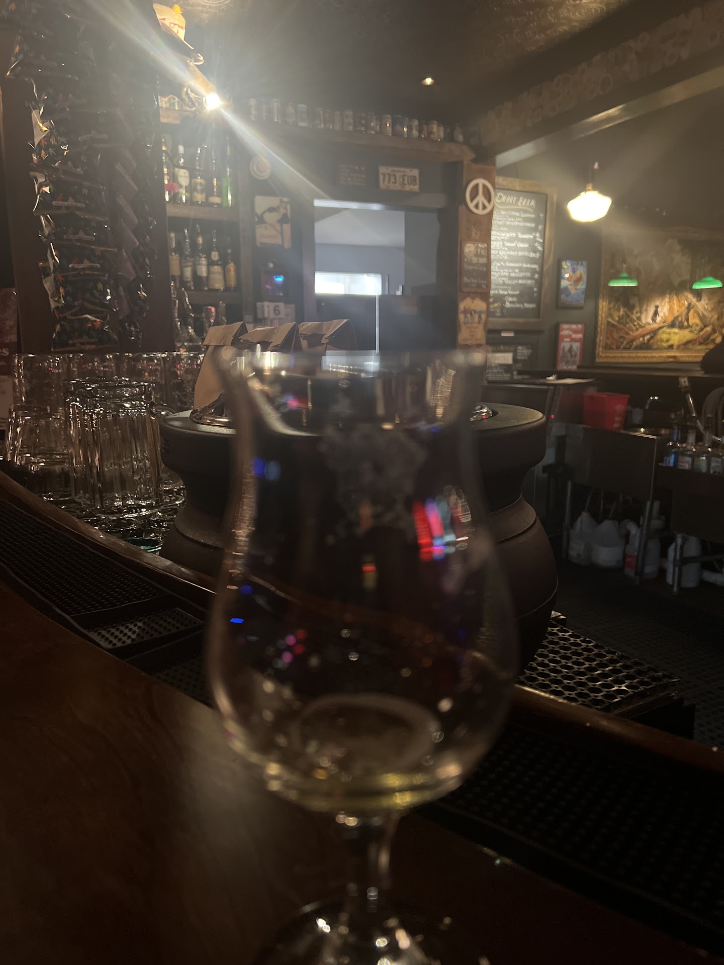 Not really a warm welcome when we approached the bar. Honestly, I could see the woman bartender worked there. She was hustling around. The dude.....wasn't super sure he worked there. In any case...ordered two bourbons on the rocks.