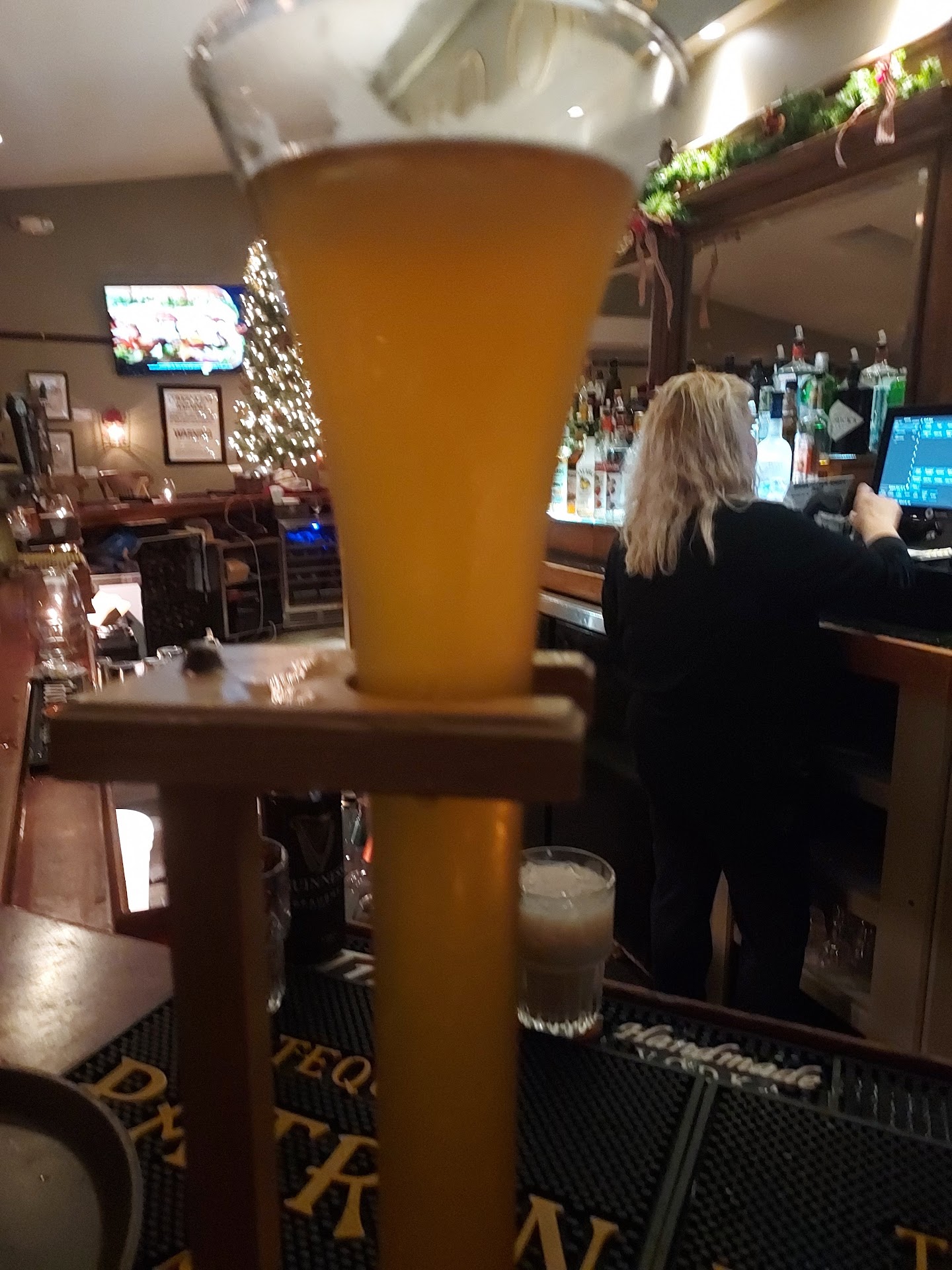 Read moreThe yard of ale is a older resturant which is comfortably designed from the inside and out. White linnen tablecloths provide an elegant atmosphere along with hooks which are lined up next to the tables to hang coats or sweaters. The bar area has wooden heavy tables as well as booths to sit at. It was a busy New Years Eve the evening we dined. We had to wait no more than 5 minutes for our table to be ready so we headed to the bar to order a yard of ale. I highly reccomend the dub light. It was perfect ice cold with a hint of smokiness to add to the flavor. Both the bar tender and the hostess were kind enough to help me with the yard of ale since it's large and can be awkward to carry with out spilling. Service was both promp efficient and friendly exspecially since it was an extremely busy evening and all tables were taken. Our server greeted us with a smile and started by informing us what the specials were for the evening. We started with the delicious warm hand made bread ( a nice amount) which accompanied the meal and came with 5 different dipping sauces. Ever so delicious. The appetizer of choice and one which I highly reccomed is the fried dilled spears. Once again a nice portion to share not greasy but batter coated and fried just right. The dipping sauce was a creamy pepper one which was a perfect match for the spears. I also ordered a small cup of French onion soup which was one of the best soups I've had. The broth was anything but bland instead a nice amount of onion and cheese which completed the base. Entree of choice and comes highly recommended is the Chicken Maryland. A chicken breast stuffed with crab and broccoli with the right amount of hollandaise sauce provided without making the chicken taste soggy. The outside crust added to the chicken was crispy and delicious. The garlic smashed potatoes couldn't have tasted better nice chunky potatoes with a hint of garlic. And last but least the vegetable melody which accompanied the entree was made with fresh veggies and tasted like summer. I highly recommend the yard of Ale. It will not disappoint. Thank you Yard of Ale I'm looking forward to my next visit. Check web site for hours and days the resturant is opened....