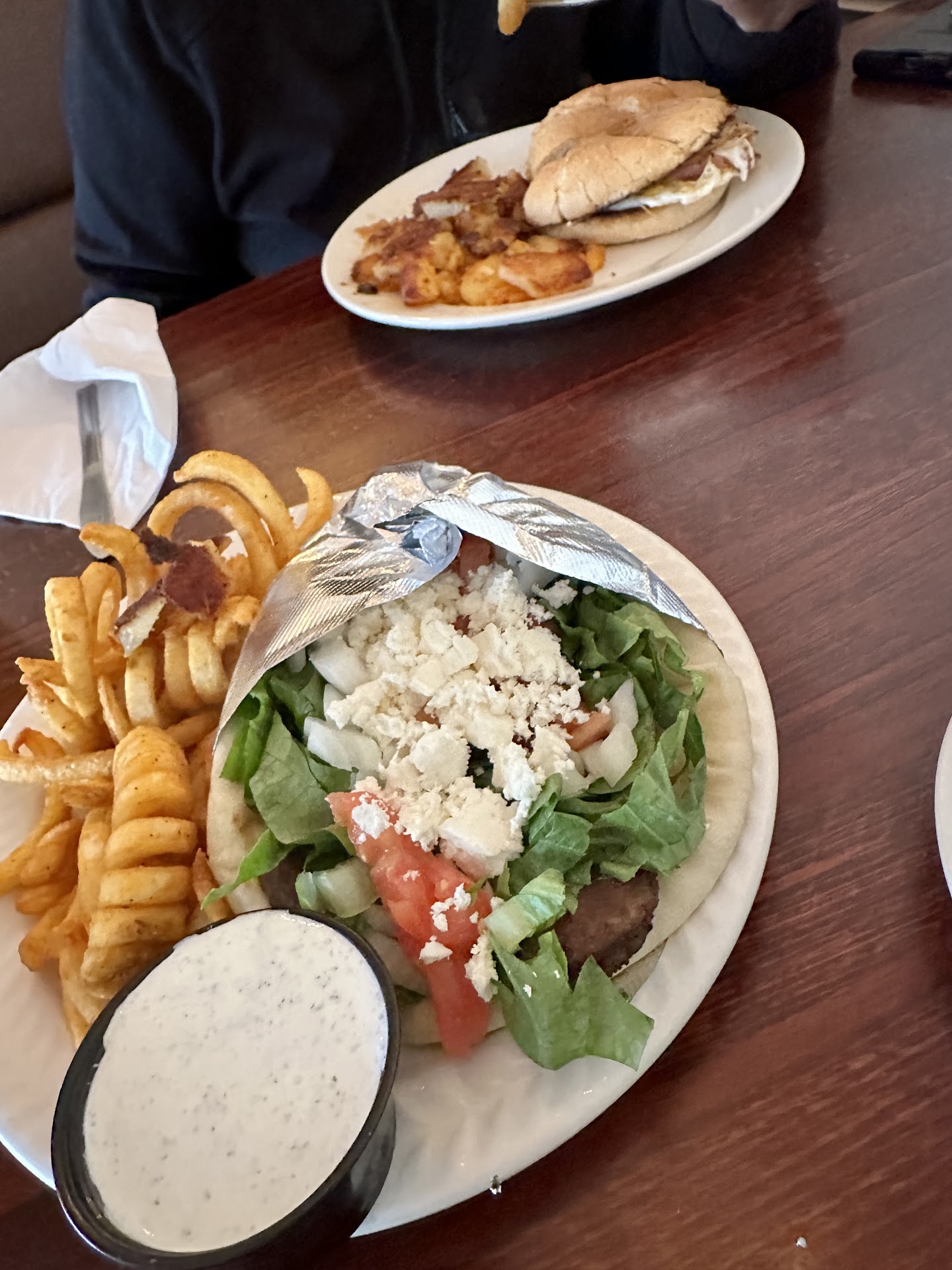 Read moreFood was great, can't complain there. We, party of 3, tried different wraps. Everyone loved them and the fries came out hot & crispy. Would go back for the food. According to most reviews the service here is always fantastic but on the day we went at 1:30pm the service was extremely slow. From the time we sat down, to placing our order, to getting the food took over 45 minutes. I do NOT blame the waitress, there was only one. She was doing a great job trying to service all the tables, check each table after food was delivered, bus the tables, bring boxes for take home and deliver the checks. We joked that maybe she was cooking too. At one point there was over 35 people there. I'm not sure who the hostess was but she stayed behind the bar, flipping a paper and watching TV. With that many people and several tables that needed clearing she should have lent a hand to the overworked waitress. Haven't decided if we will give it...