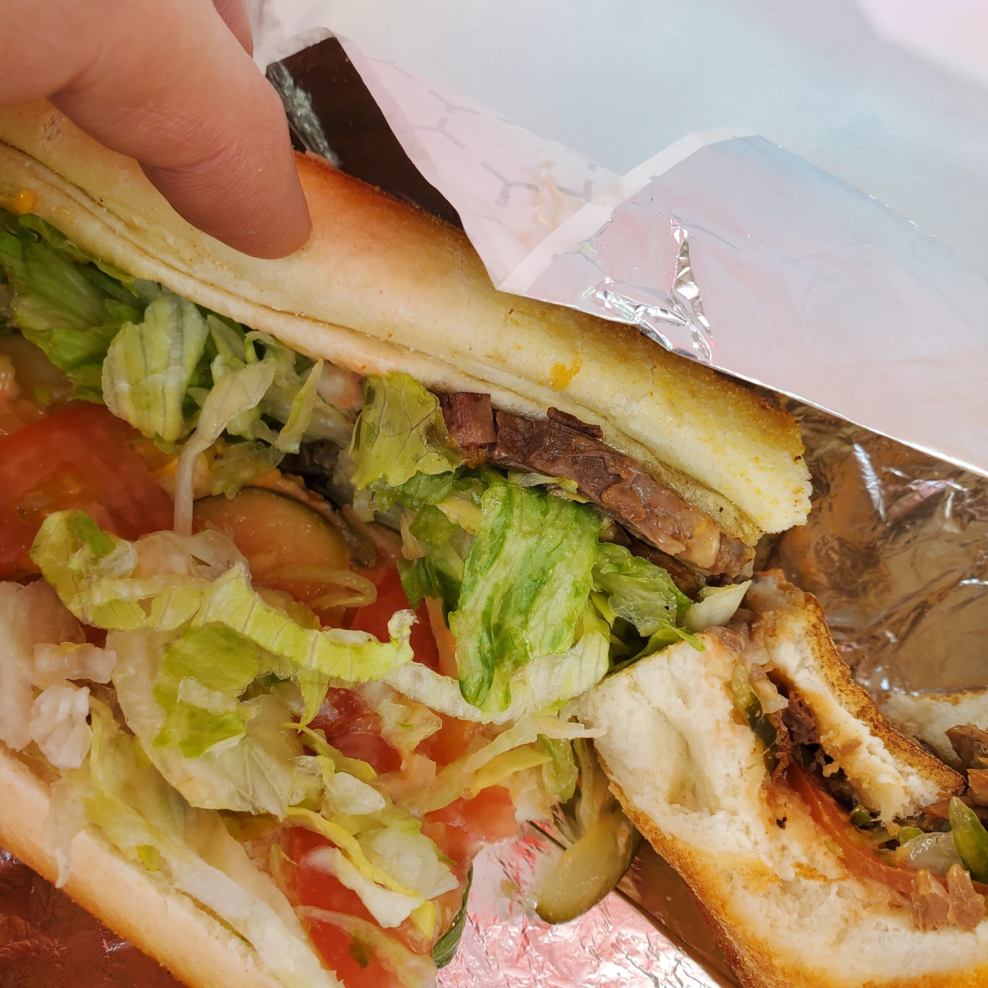 Read moreSorry- I had high expectations just seeing this place from the road- Excellent sense of arrival- signage "Smoked Meats Sandwiches "! The rustic Texas BBQ look, typical ranch items as lawn ornaments, fantastic hand written menus the size of a wall. Overheard an Associate recommend the West Coast Brisket Sandwich so I ordered it. Ordered a full size ( grinder roll) with fries. The servers were fantastic- hard working, smiles, friendly and efficient. Unfortunately the sandwich was a big fail. The ratio of filler to brisket was horrible. Way too much lettuce, tomato, pickles, russian dressing sauce and thick grinder roll bread all drowned out the thinly sliced layer of meat. I swear I could not even taste the brisket. ..and the small amount didn't even cover the width or length of the bread. The fries looked good- thin Julienne cuts- but they were room temp if not cold and since they were so thin and soft I suggest offering plastic forks to help diners pick them up. Have you ever had an Italian grinder and the proscioutto and other meats are like 3 to 4 inches thick? The brisket was barely a 1/8" inch layer. The price of $21.99 should have been enough to sink my teeth into a thick multi- layer of tasty, smoked beef brisket. At other BBQ places for that much you get a platter with 2 meats, beans, potato salad or corn on the cob and corn bread! Sorry-maybe the preparer missed the recipe...
