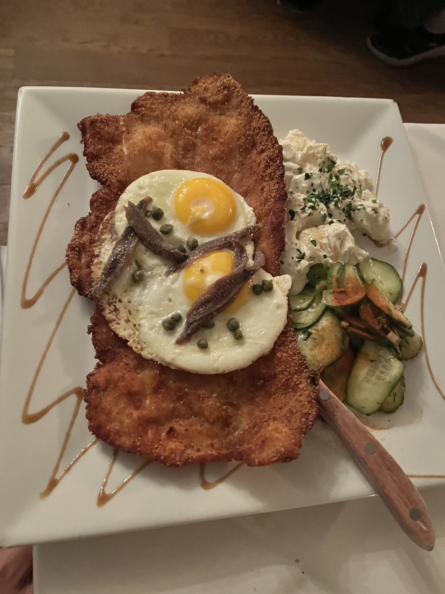 Read moreThis was my second time eating at Nadine's. I thoroughly enjoyed the Sauerbraten on my first visit. The establishment was small, and the servers were both knowledgeable and courtious. I looked forward to going back. However, my second visit proved to be much different. After finding a piece of plastic in my meal, we told a server that came over to check on us. She acknowledged the plastic, apologized, and left to inform the owner. She returned a few minuites later, telling us that they had dropped the cost of my meal from the bill. She said that they would be having a conversation with the kitchen, and apologized once more. She sorted our bill shortly after and we went on our way. My issue is that while all of this occured, the owner (who was identified by the server) was sat on a stool at the bar. Instead of coming over to our table, he sent his waitress. It seemed as though he could not be bothered. While this situation was handled well in every other regard, the sheer lack of professionalisim from the owner overshadows every other aspesct that was handled with courtesy. An acknowledgement and apology would have gone a long way, and some would even consider it to be the bare minimum response. In such an intimate atmosphere, you wouldn't think this to be the case. I understand that people can have a bad day and that mistakes can happen, but I struggle to find an excuse to fail to acknowledge and address such a catastrophic mistake from the kitchen. It would have taken less time than it did for me to write...