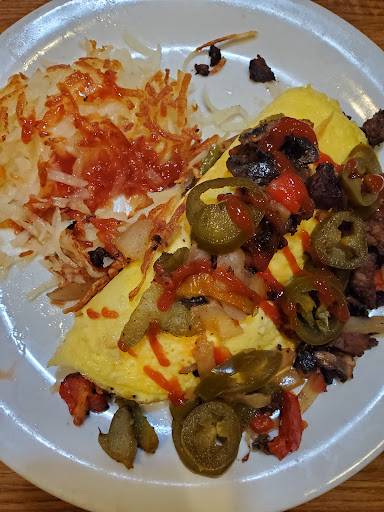 Read moreIt's Dennys on a Sunday. Great for a quick breakfast. Was in and out within 35 minutes. Server Linda is the best as she is very kind with a hustle and personality, which brings me joy and inspiration. Not sure what was up with the young lady who cashed me out. I arrived at the counter, and there was no one there. A family of 4 walked up behind me, and she reached past me to cash them out first. That was curious. My bill came to $10.81, and I gave her $21.01, which I thought she was going to short circuit trying to figure out the change. I played the jeopardy music in my head for further amusement. I must remember when coming up against individuals some 4 decades younger they are quick with technology but slow when ciphering. I'm the opposite. All good though. I understand (d)evolution as I grew up turning in soda pop bottles and counting change, whereas many of them are swiping debit cards at 12 yrs of age. But like I said It's Dennys on a Sunday. I usually go for a quick, affordable meal, Linda's Great service, and to watch the other servers who are awesome with each of the regulars whom they know by name. Would have rated higher for food but this day the scrambled eggs were a little runny and the link sausage were of questionable quality. Ohh and they recently changed the menu which miffs me because I have to figure out a new value meal (practicing for retirement) especially if I forget to specifically ask for the "other" menu which has different deals, but you must request it. Go figure! But yet again, Linda came to my rescue. See y'all...