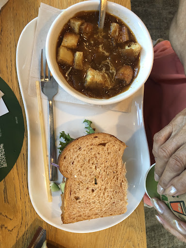 Read moreI enjoy the freshness of Panera. Is it always worth the price to me...not enough to put it in regular rotation. I consider it a nice splurge. I do like the 1/2 and half option, opting for the combo of salad, soup or sandwich based on the weather and my mood. In Tracy, this location has a nice outdoor option (as I am still not too comfortable with indoor dining) where you can enjoy your meal, if you don't hit the drive thru. Service is usually quick, even with a group. The staff is always friendly and knowledgable of the menu. Since it not one of my usual places, I try different things each time. So I tend to ask a few questions (lol). But what I can say is that most of what I have tried is a hit. Nothing stands out as a no-go and I would highly recommend this to all that enjoy soup, salad and sandwich options. Today I enjoyed the Fuji Apple salad with Chicken. So far its my favorite salad. I initially got hooked on this salad (and Panera as a whole) from work lunches, but have found myself venturing across town to grab a bite on a whim. If you never tried Panera, its great to get in the drive through and not have to get out and go though a mega list of veggies to distract you from the 3 slices of meat on your sandwich you get at that "other" sub place. You get a good serving of meat and veggies. But this is not the place to go with a picky eater, that always wants to alter the menu...or enjoys that 3 slices of...